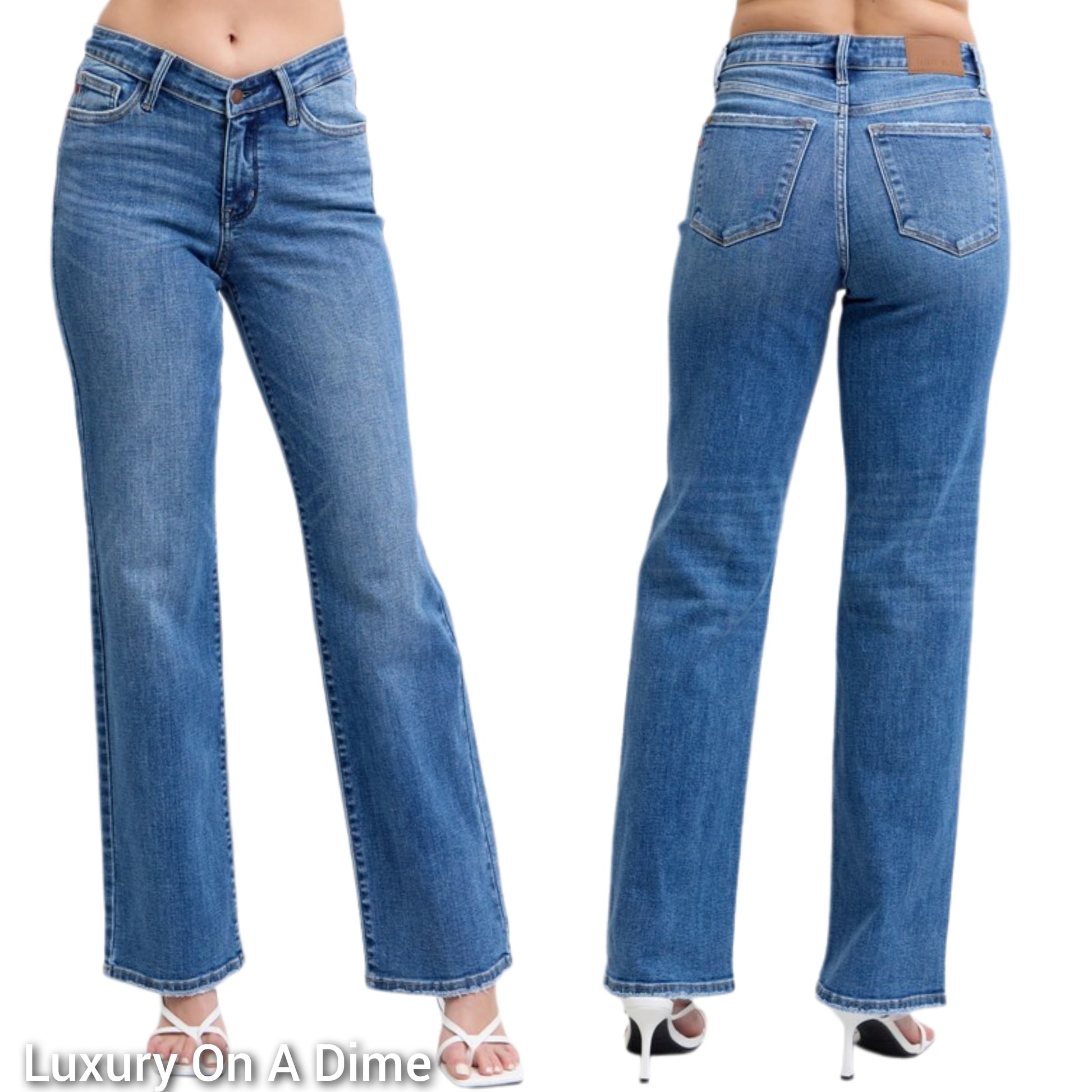 Judy Blue V-waist High-Rise Straight Leg Slim Fit Jeans Raw Hem Denim Pants