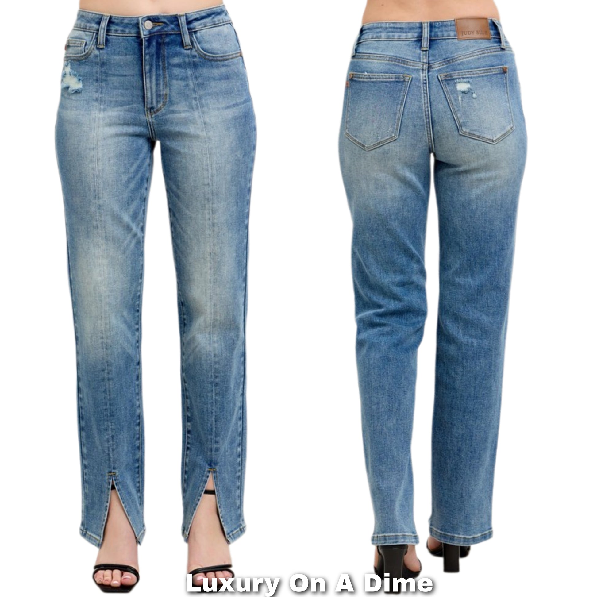 Judy Blue High-Rise Split Hem Distressed Straight Leg Boyfriend Jeans Denim Pants