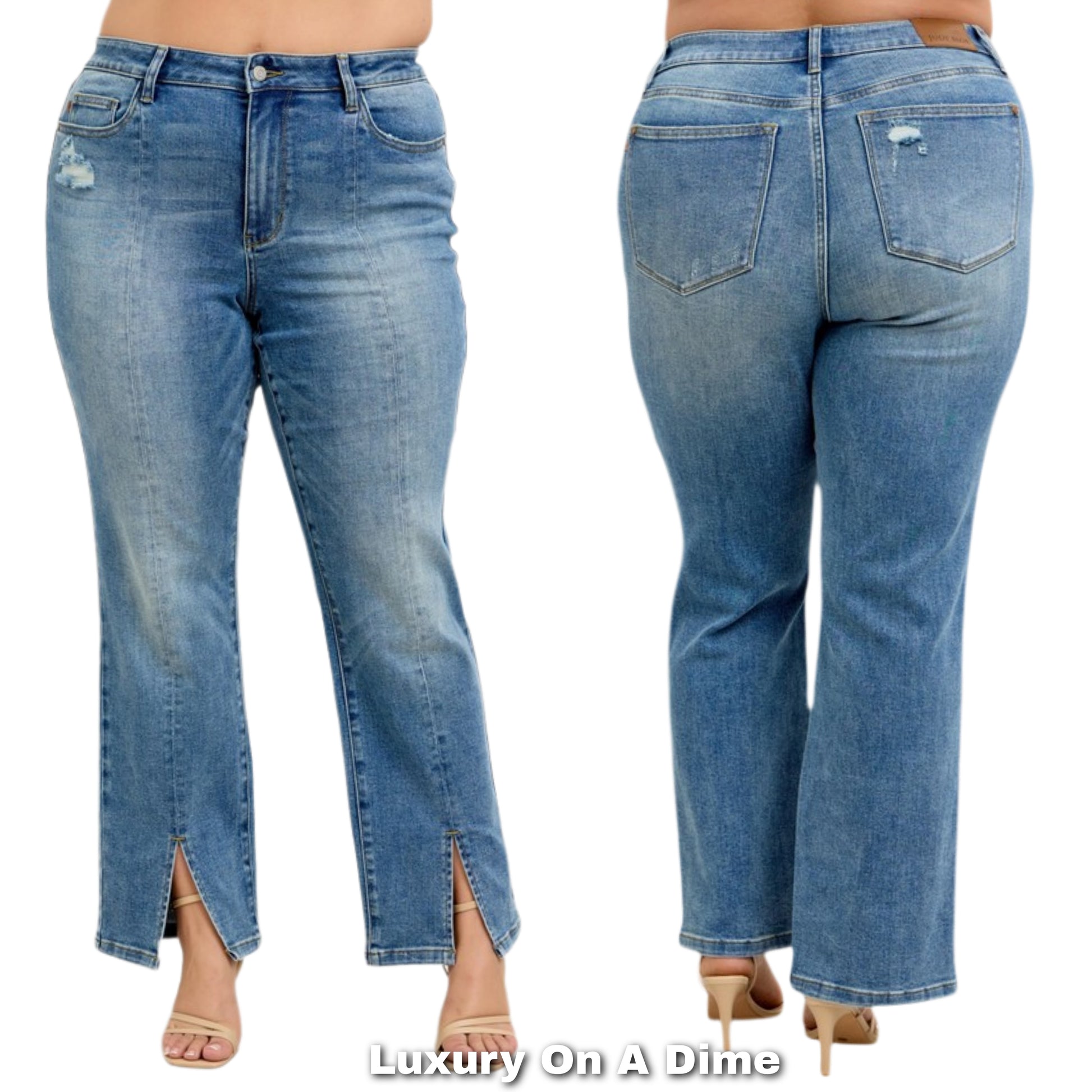 Judy Blue High-Rise Split Hem Distressed Straight Leg Boyfriend Jeans Denim Pants Vintage Wash Plus Size Available