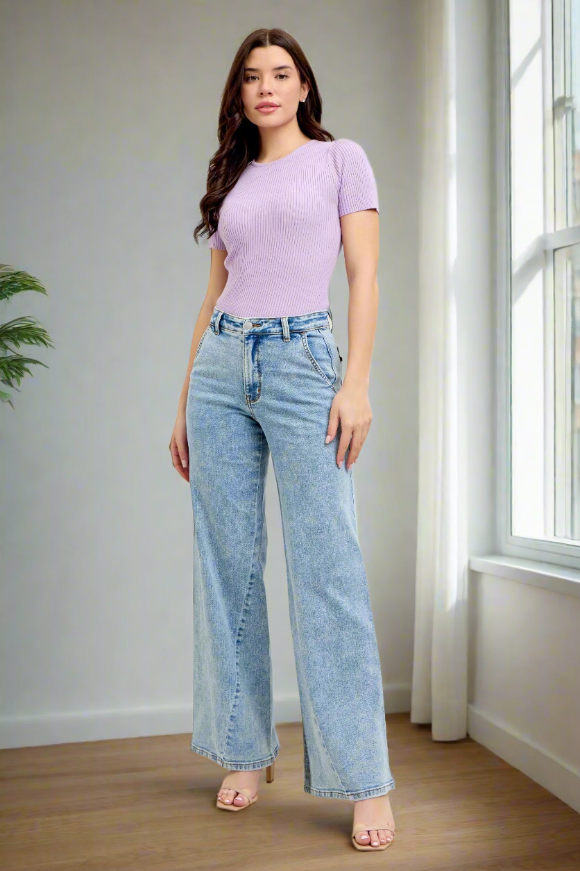 Judy Blue High-Rise Boyfriend Jeans Ultra Wide Leg Panel Relaxed 90s Denim Pants