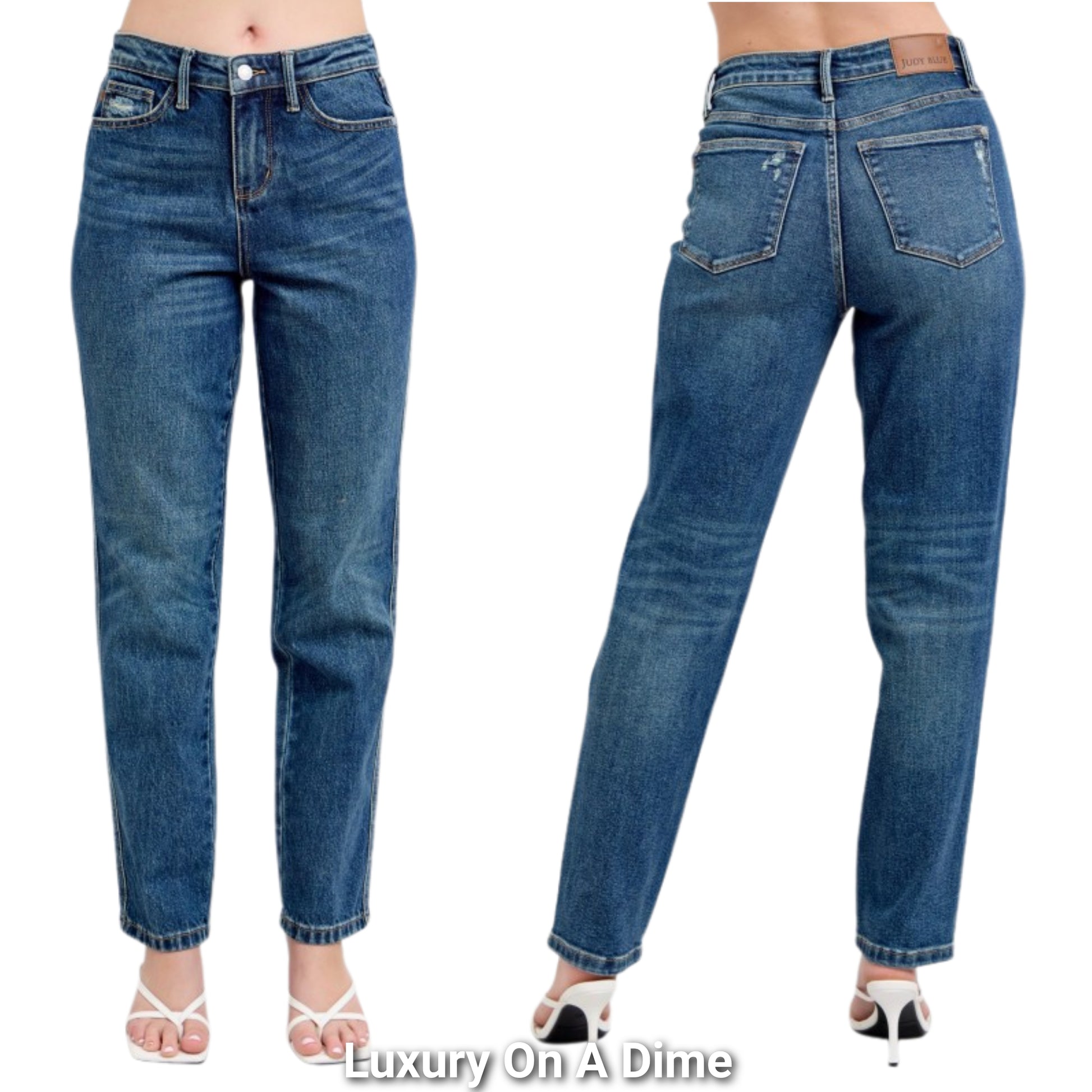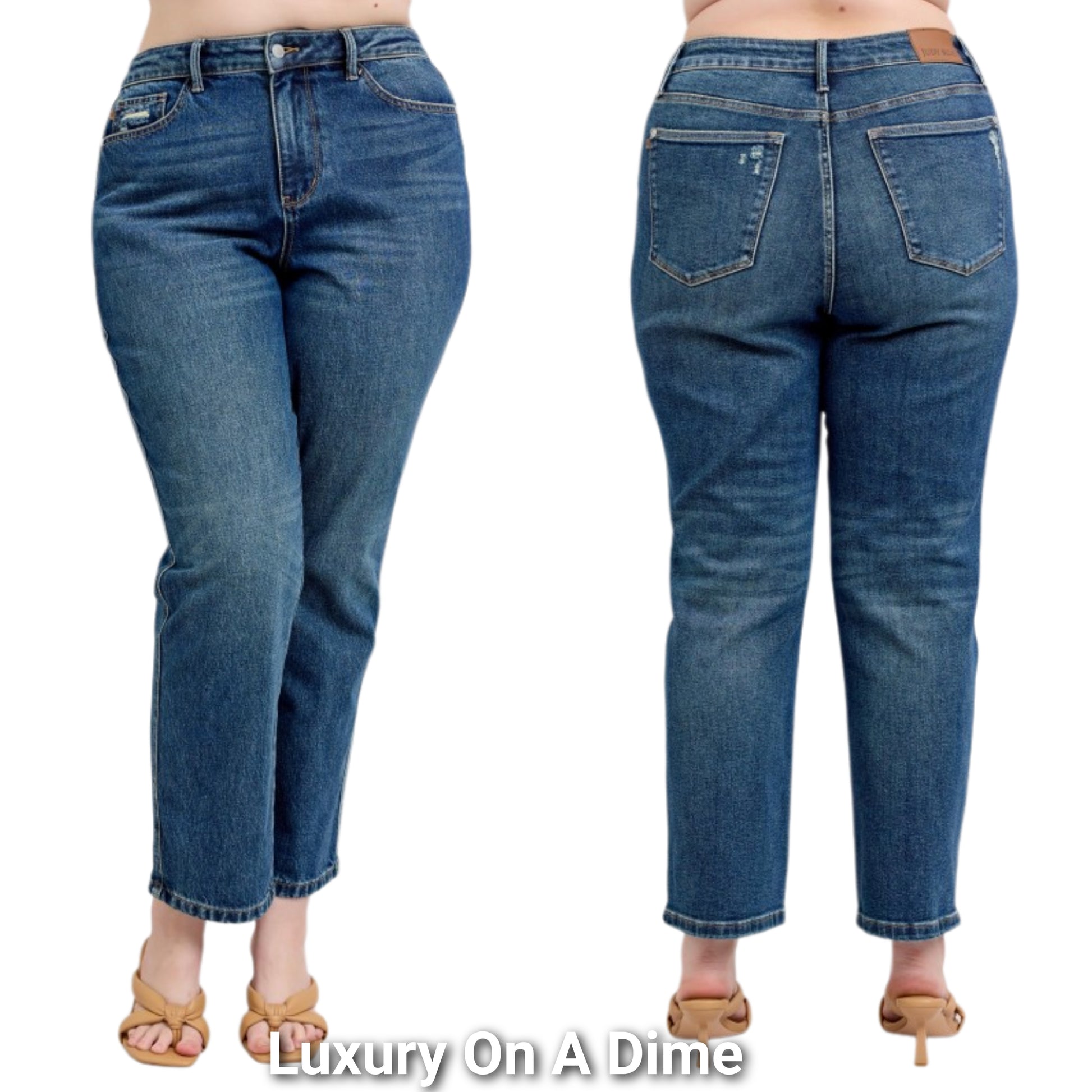 Judy Blue Rigid Magic High-Rise Tummy Jeans Straight Leg Relaxed Denim Pants Plus Size Available