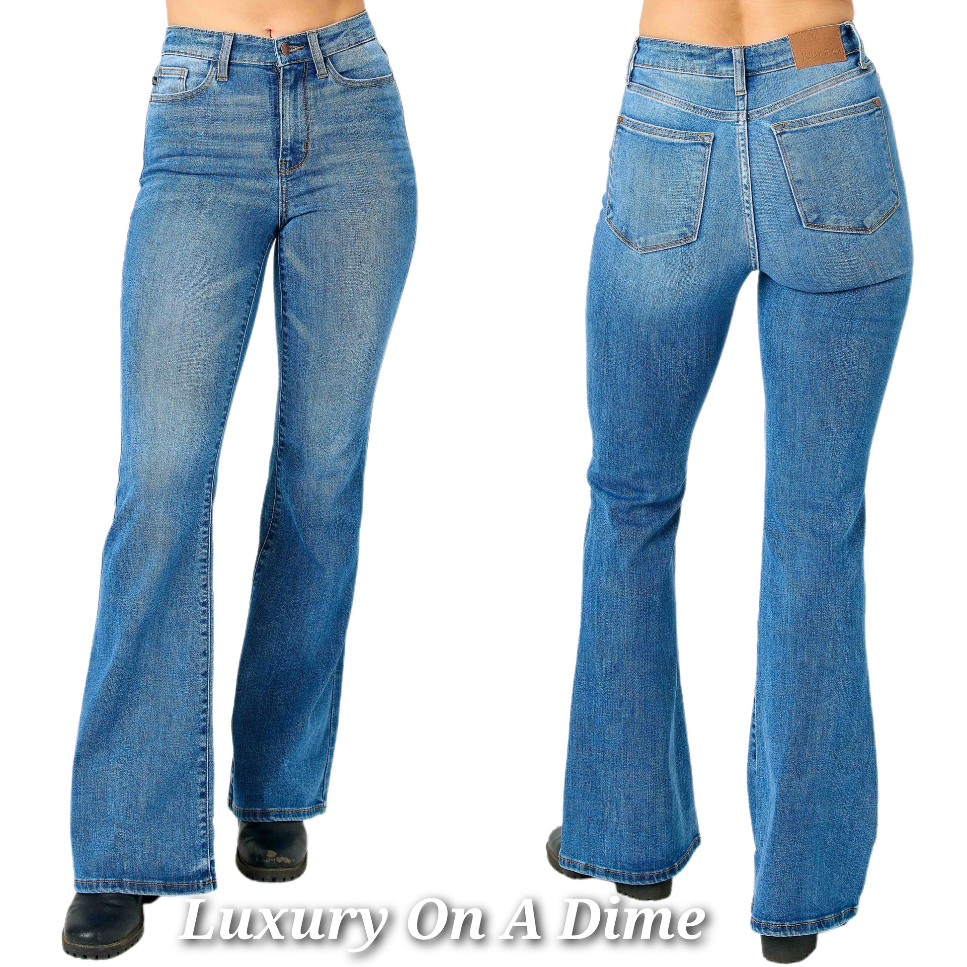 Judy Blue High-Rise Waist Classic Skinny Flare Hem Pants Denim Slim Fit Jeans Plus Size Available