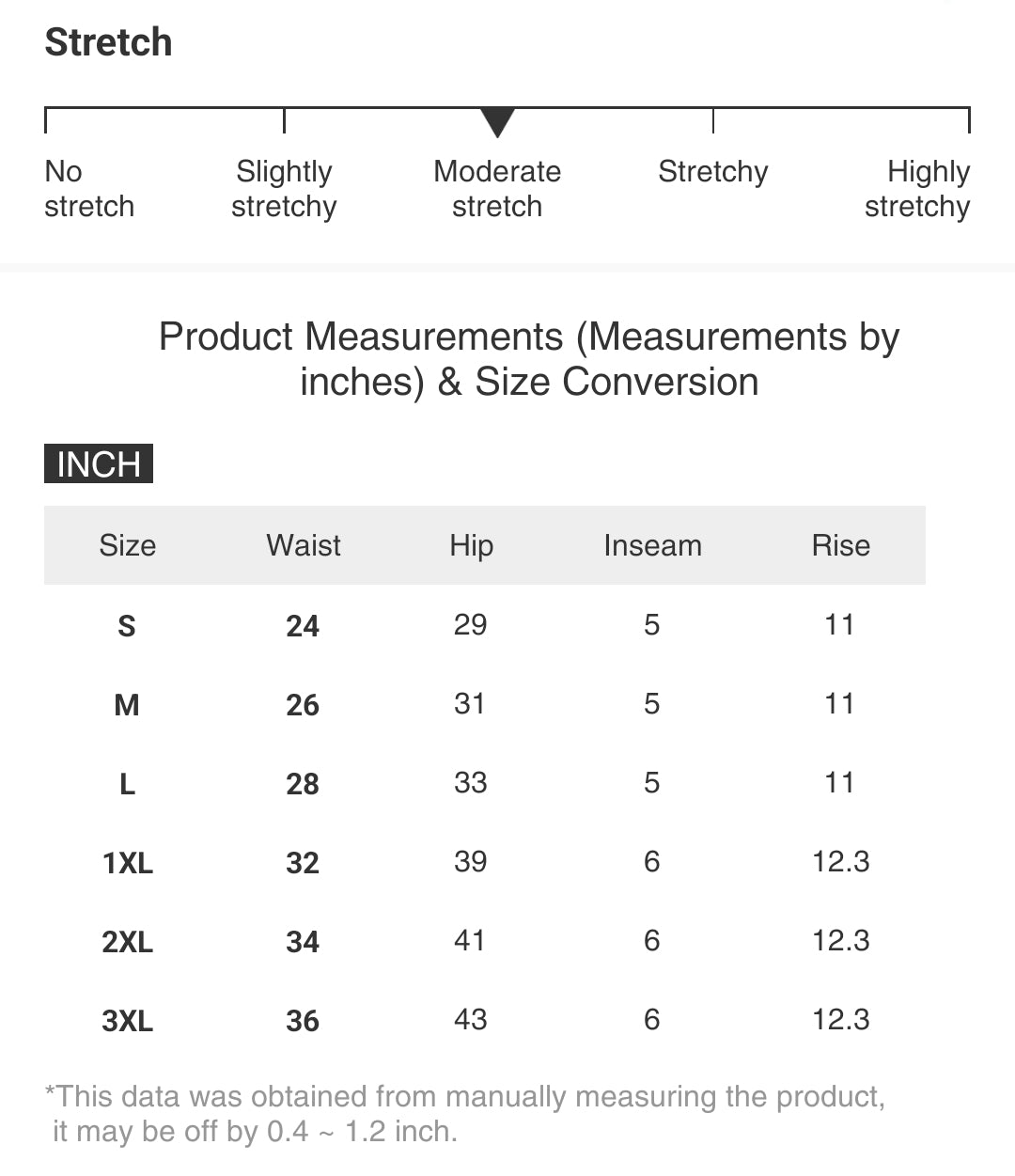 | Size | Waist | Hip | Inseam | Rise |
