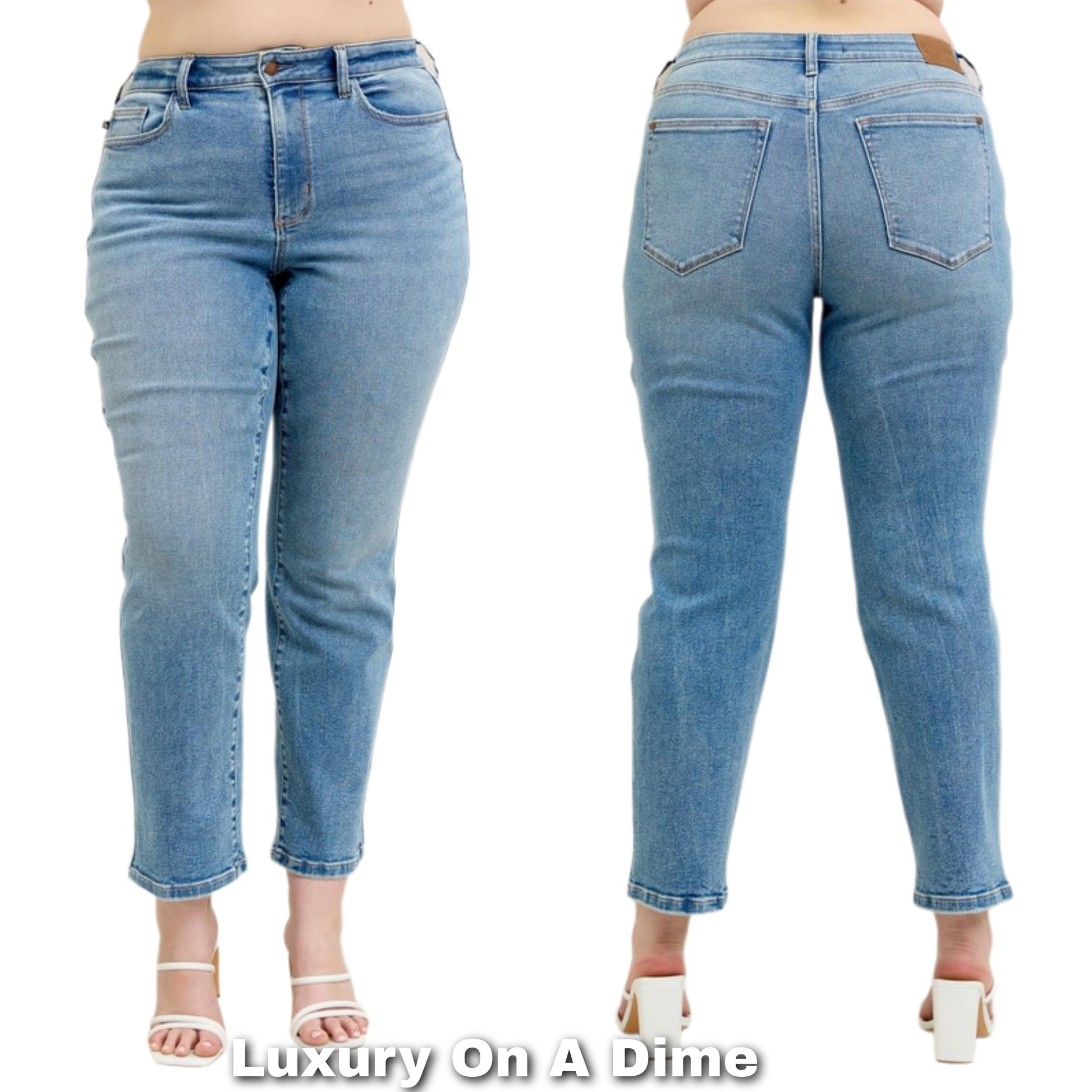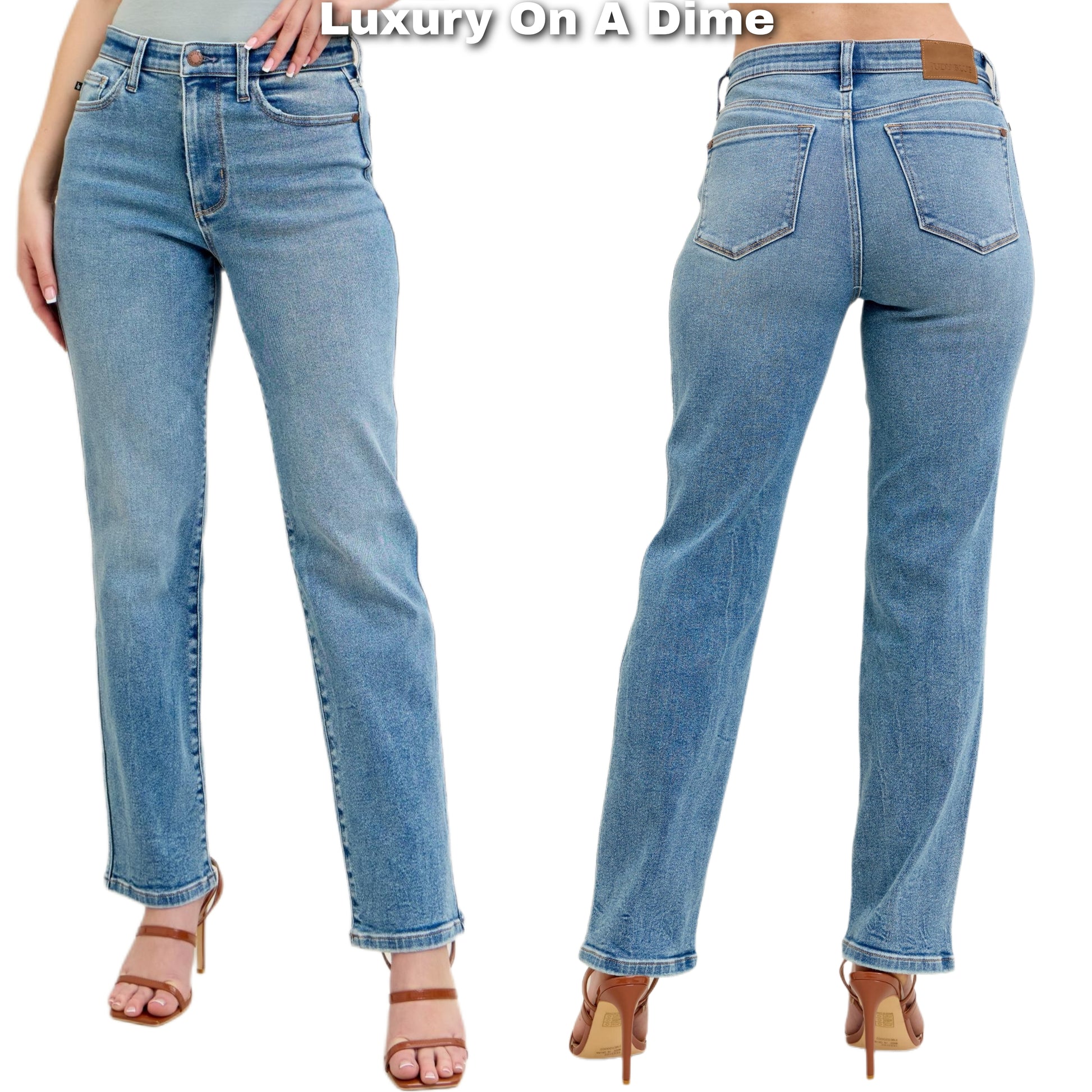 Judy Blue Retro High-Rise Waist Slim Fit Jeans Classic Straight Leg Denim Pants Plus Size Available