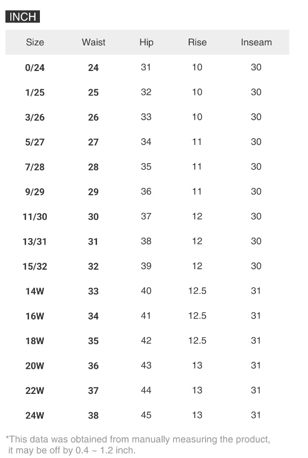 | Size | Waist | Hip | Rise | Inseam |