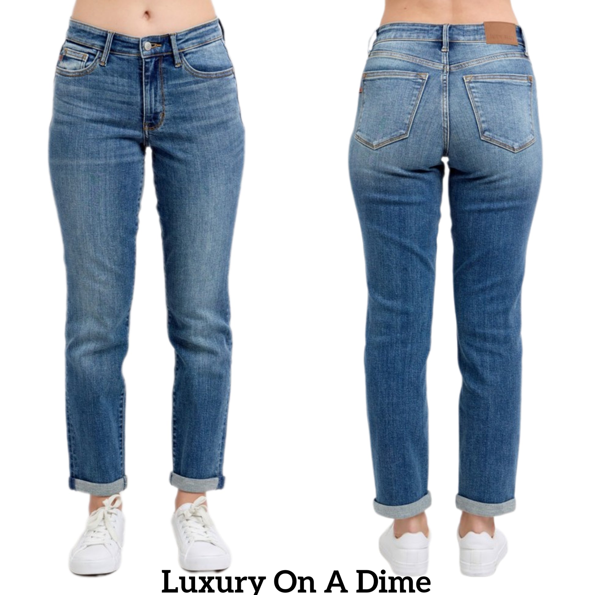 Judy Blue Mid-Rise Waist Skinny Jeans Slim Fit Denim Pants Rolled Cuff Ankle