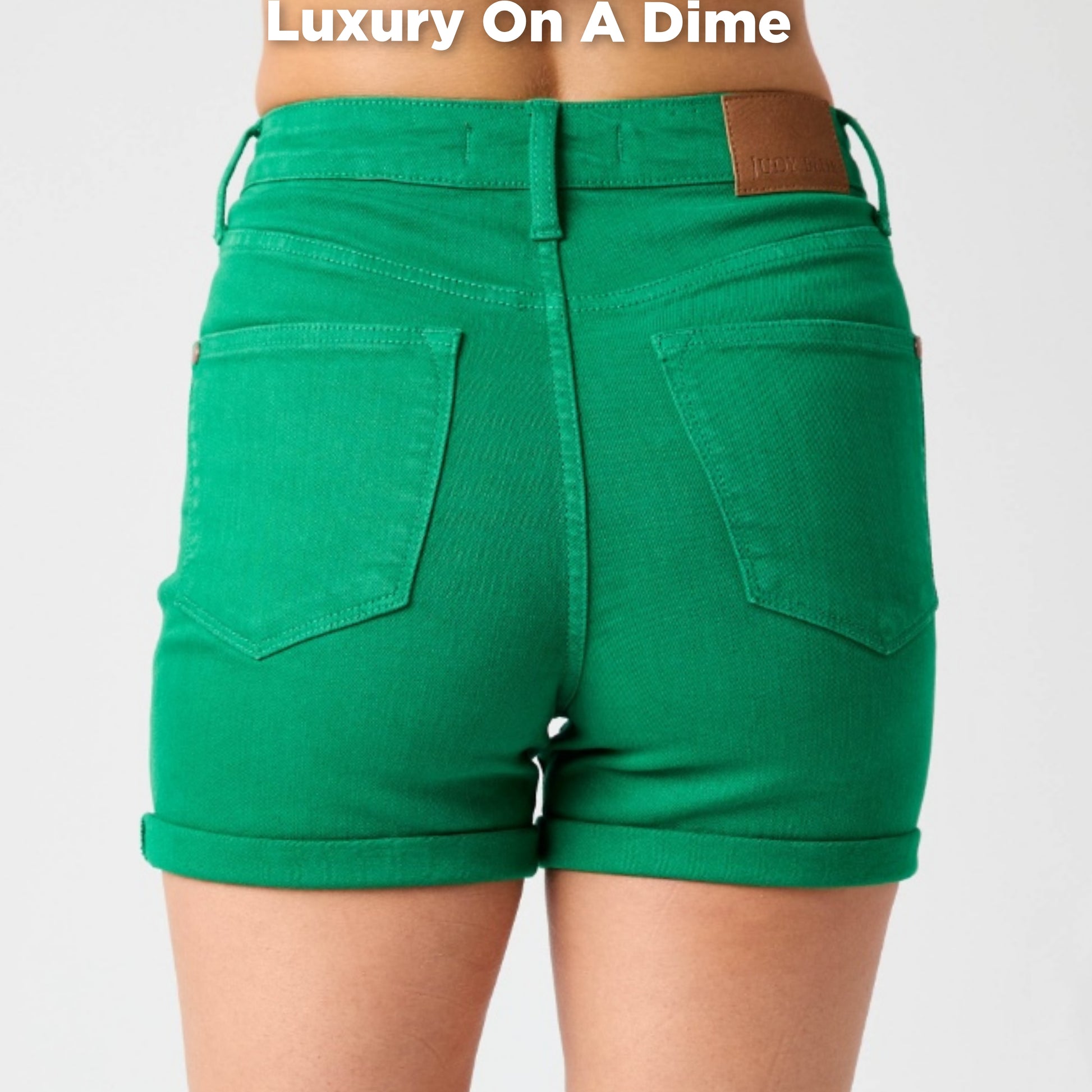 High Rise Tummy Control Slim Leg Rolled Cuff Green Denim Shorts Jean Judy Blue