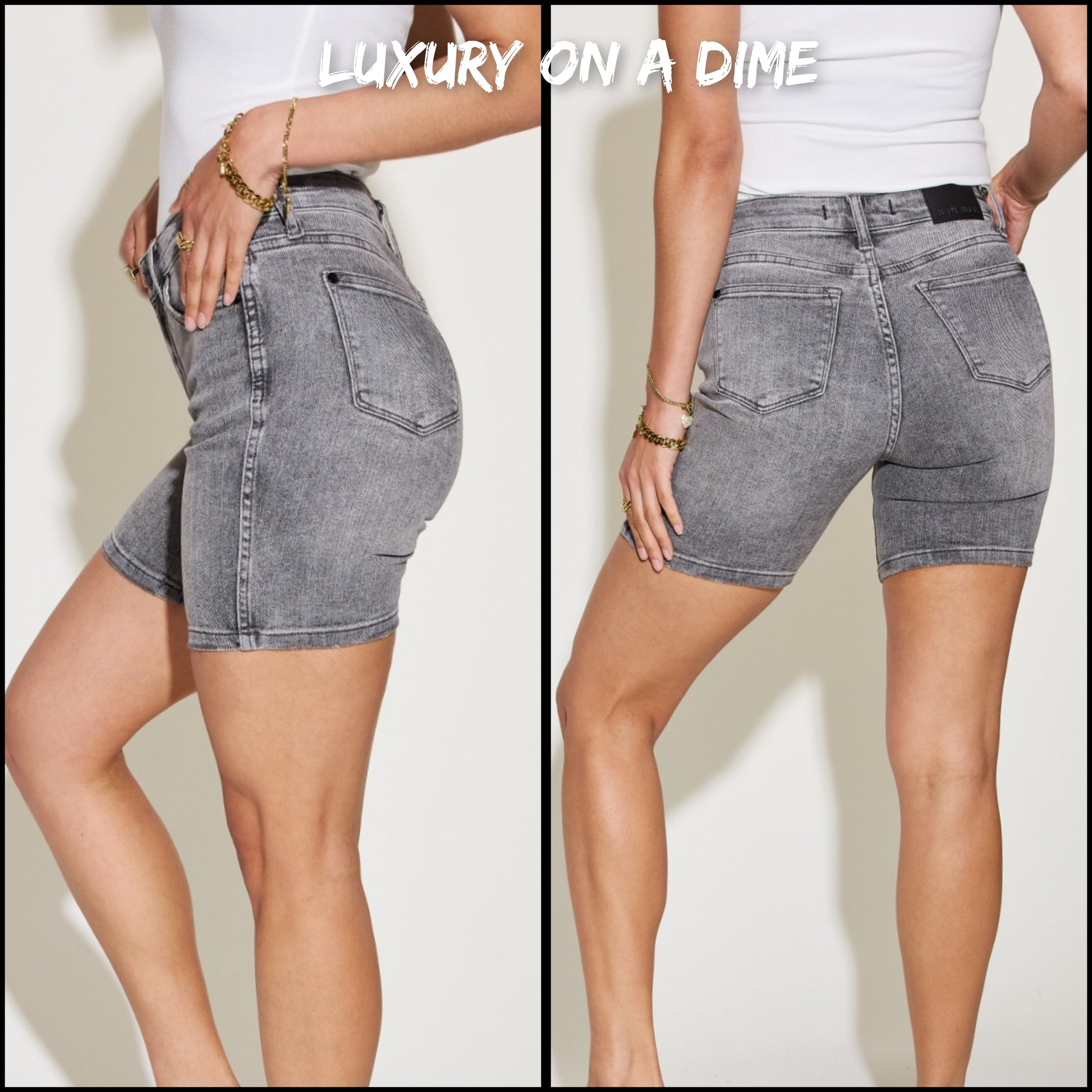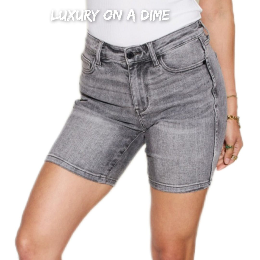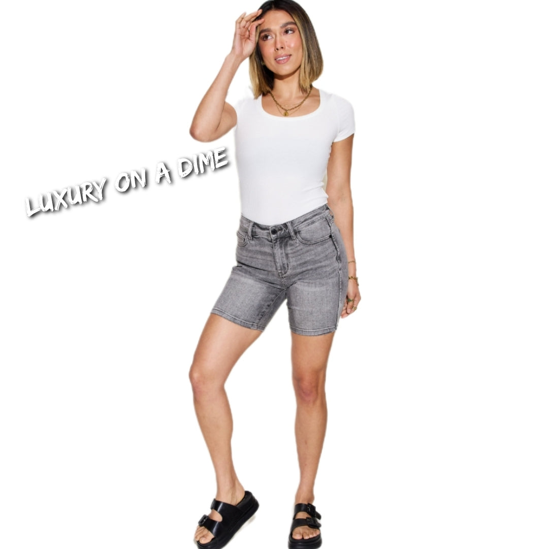High Rise Bermuda Retro Grey Washed Denim Jean Shorts Judy Blue