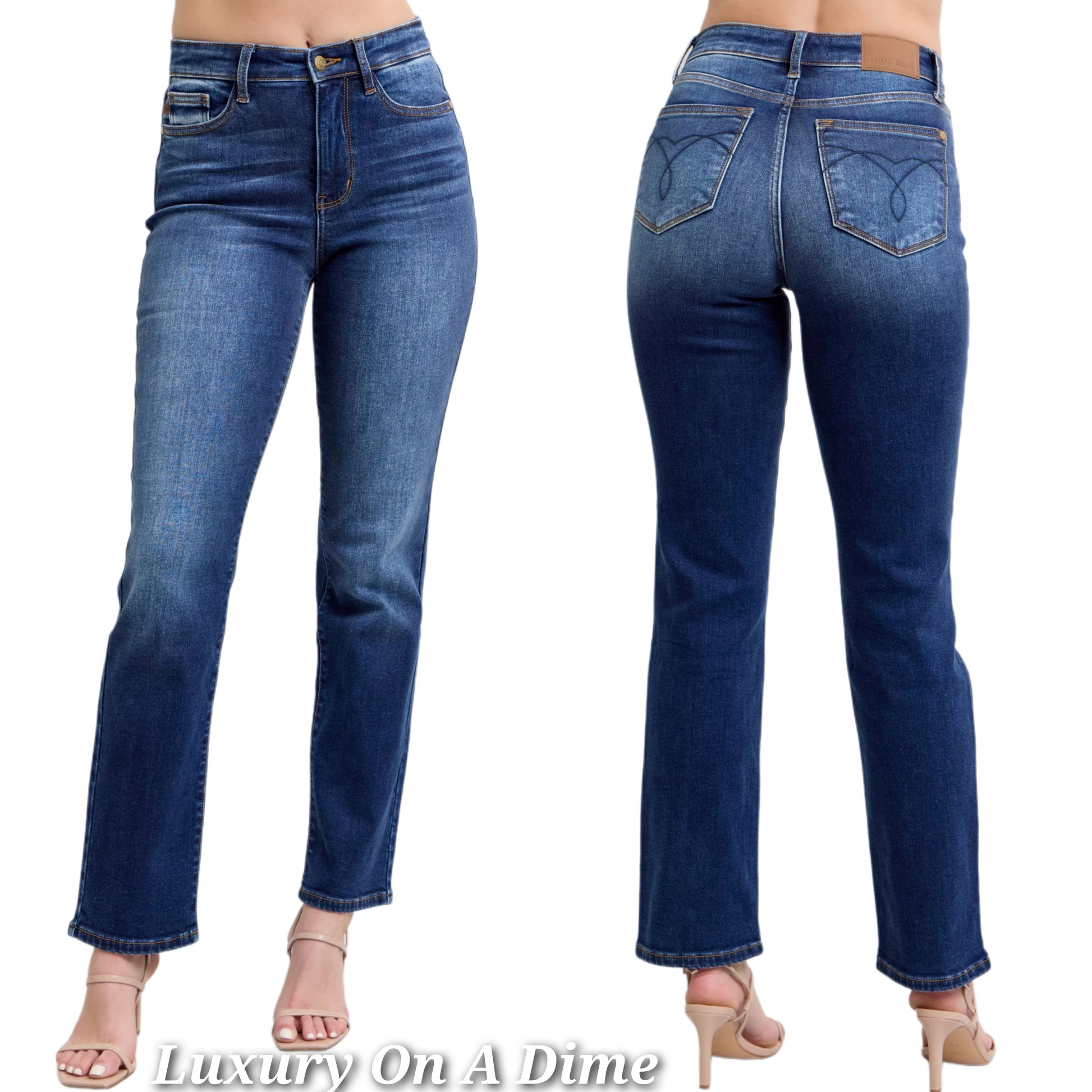 Judy Blue Thermal High-Rise Straight Leg Winter Retro Denim Pants Slim Fit Jeans