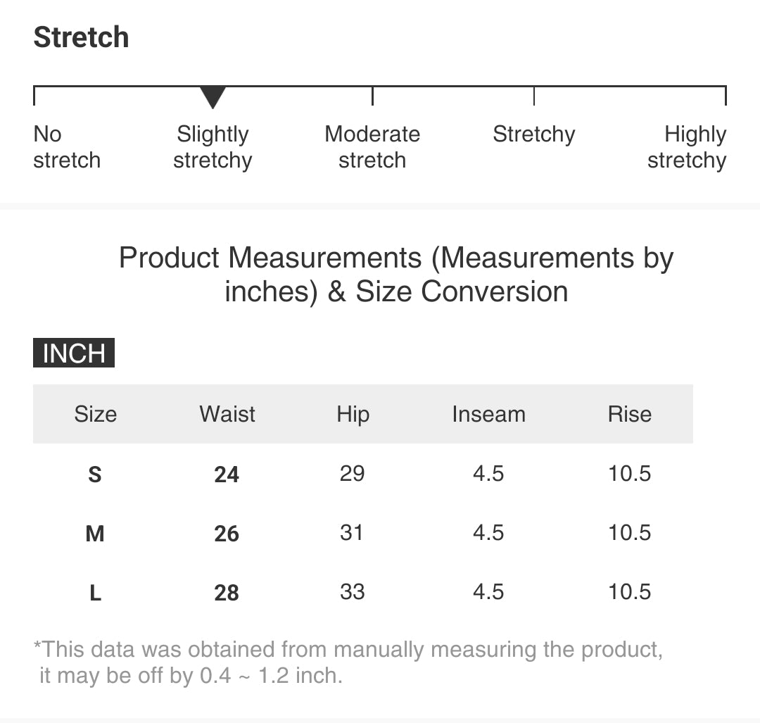 | Size | Waist | Hip | Inseam | Rise |