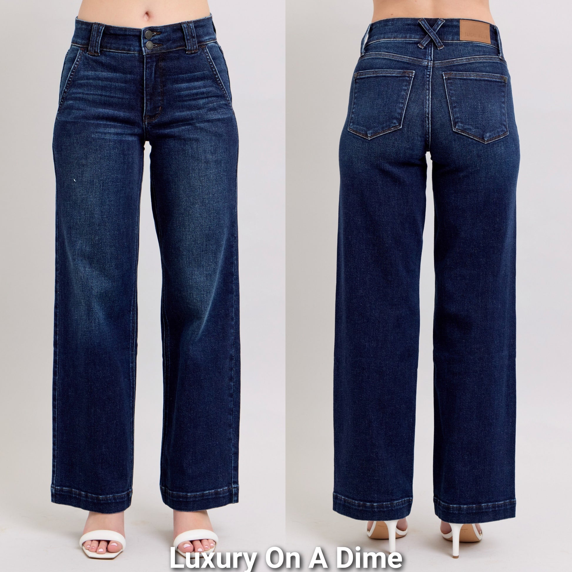 Judy Blue High-Rise Double Button Waist Pants Relaxed Baggy Wide Leg Denim Jeans