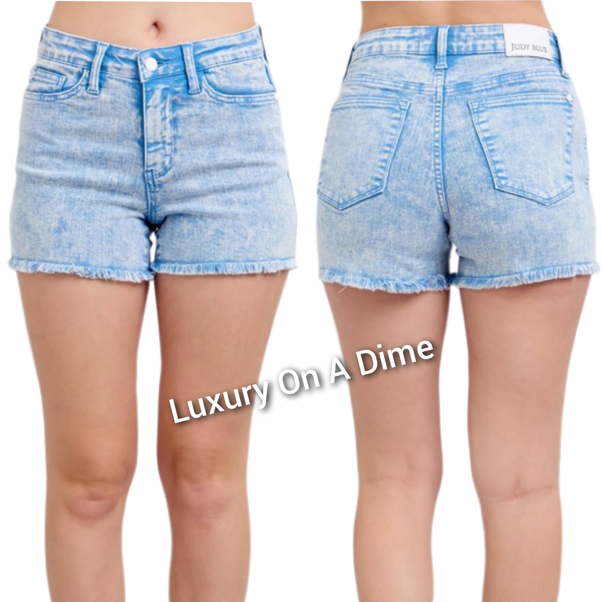 Judy Blue Mid-Rise Waist Cut-off Frayed Hem Retro Blue Dyed Denim Jean Shorts