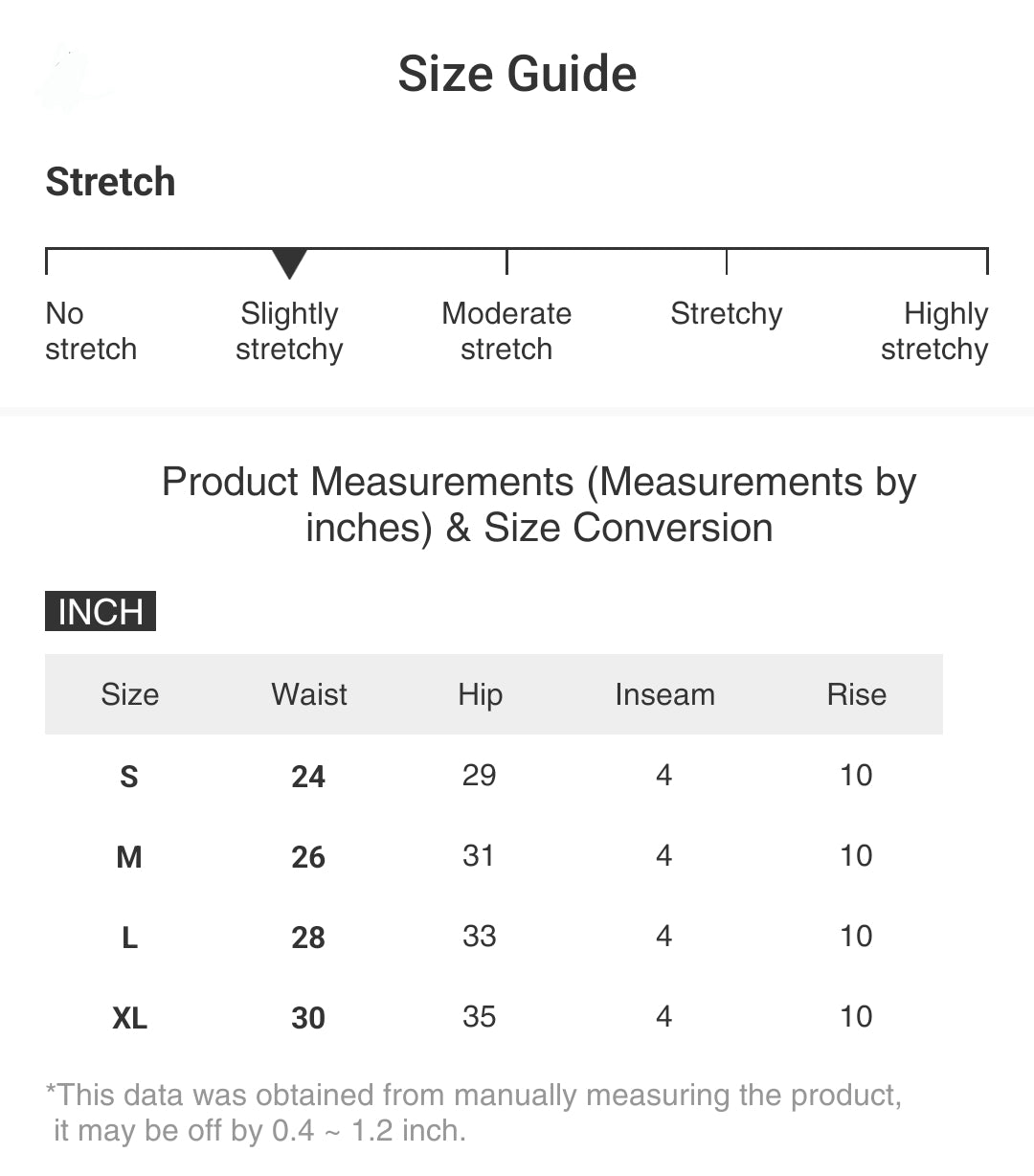 | Size | Waist | Hip | Inseam | Rise |