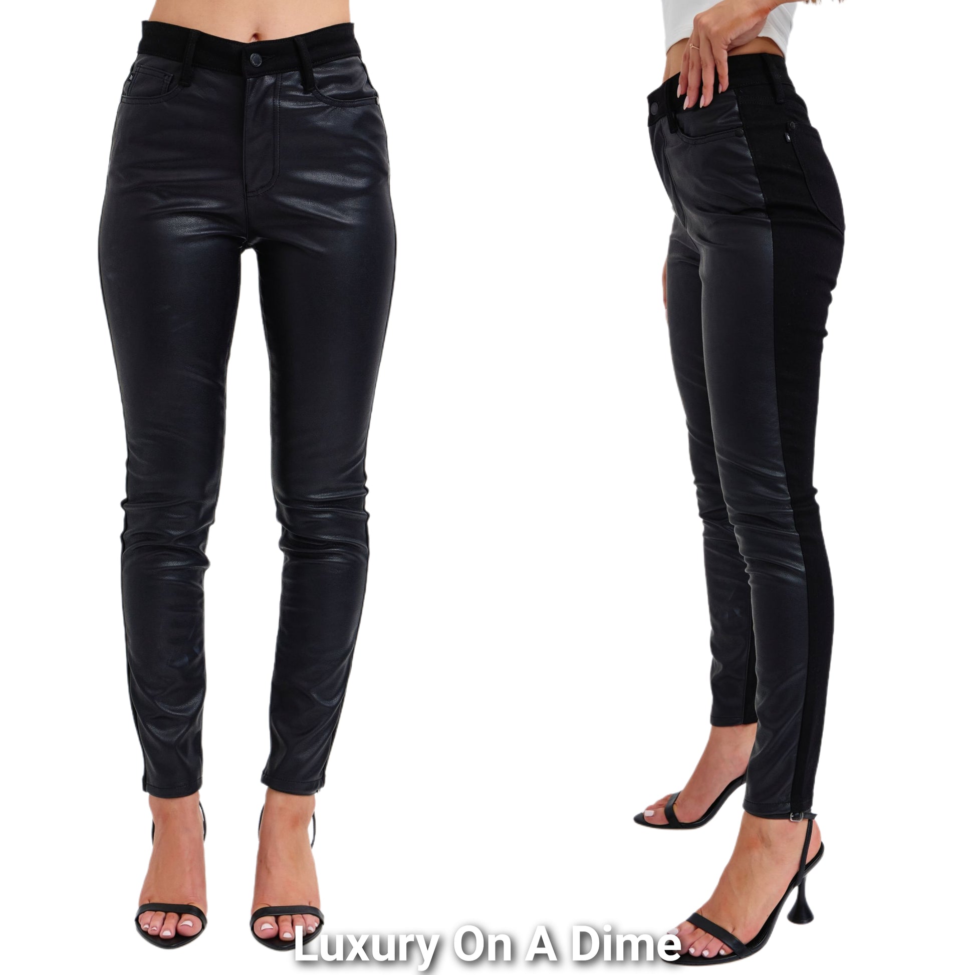Judy Blue Split Vegan Faux Leather Black Denim Mixed Construction Skinny Jeans Pants