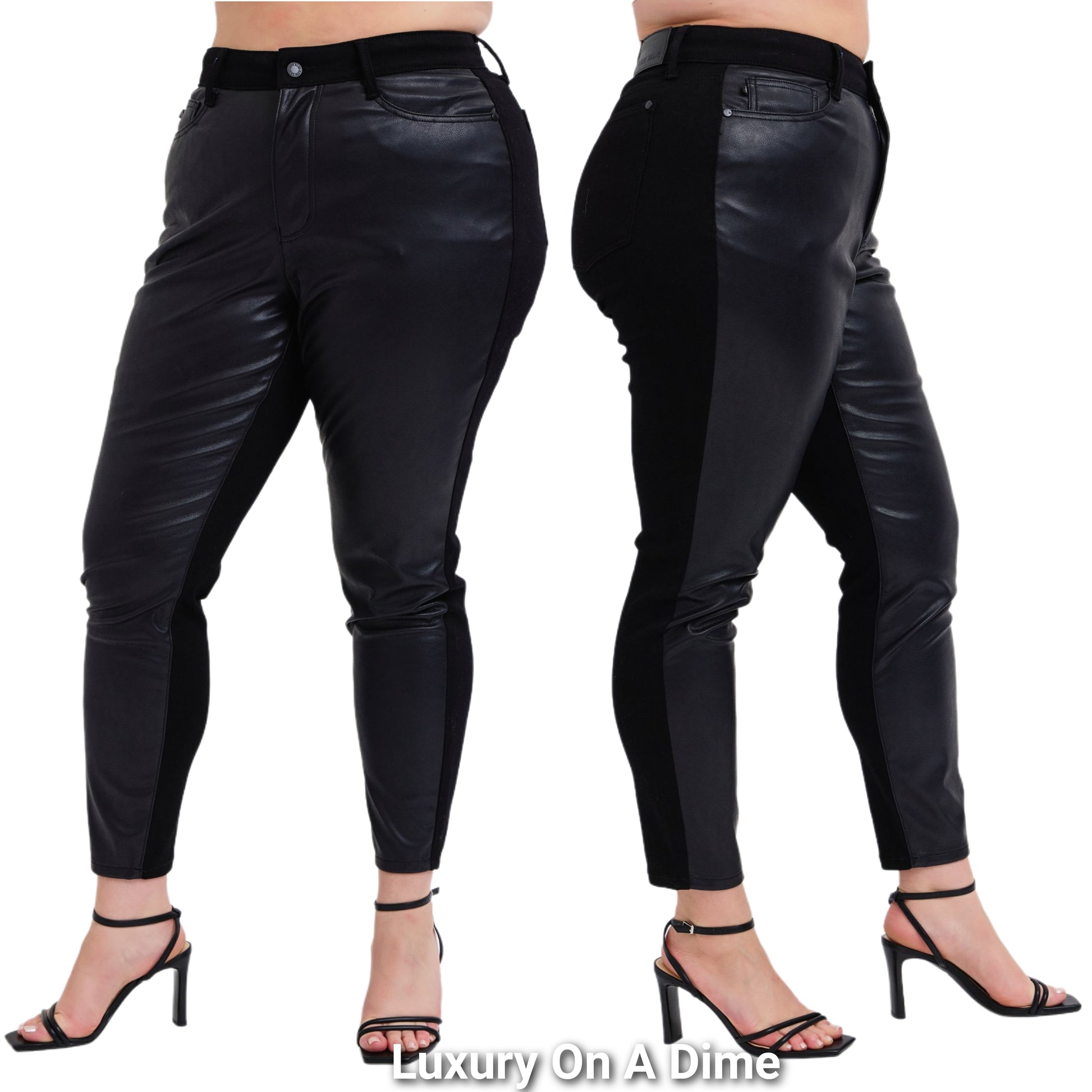 Judy Blue Split Vegan Faux Leather Black Denim Mixed Construction Skinny Jeans Pants Plus Size