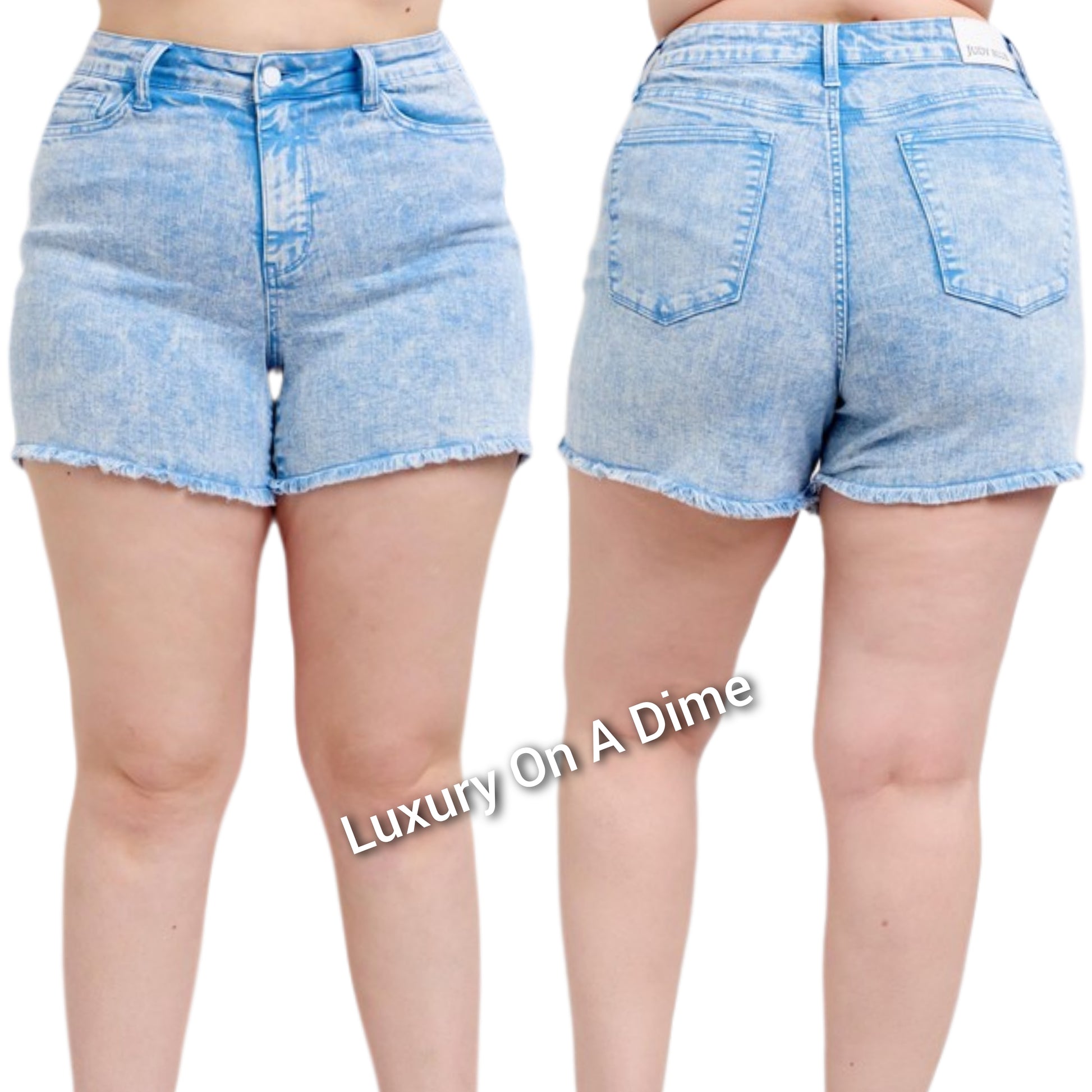 Judy Blue Mid-Rise Waist Cut-off Frayed Hem Retro Blue Dyed Denim Jean Shorts Plus Size