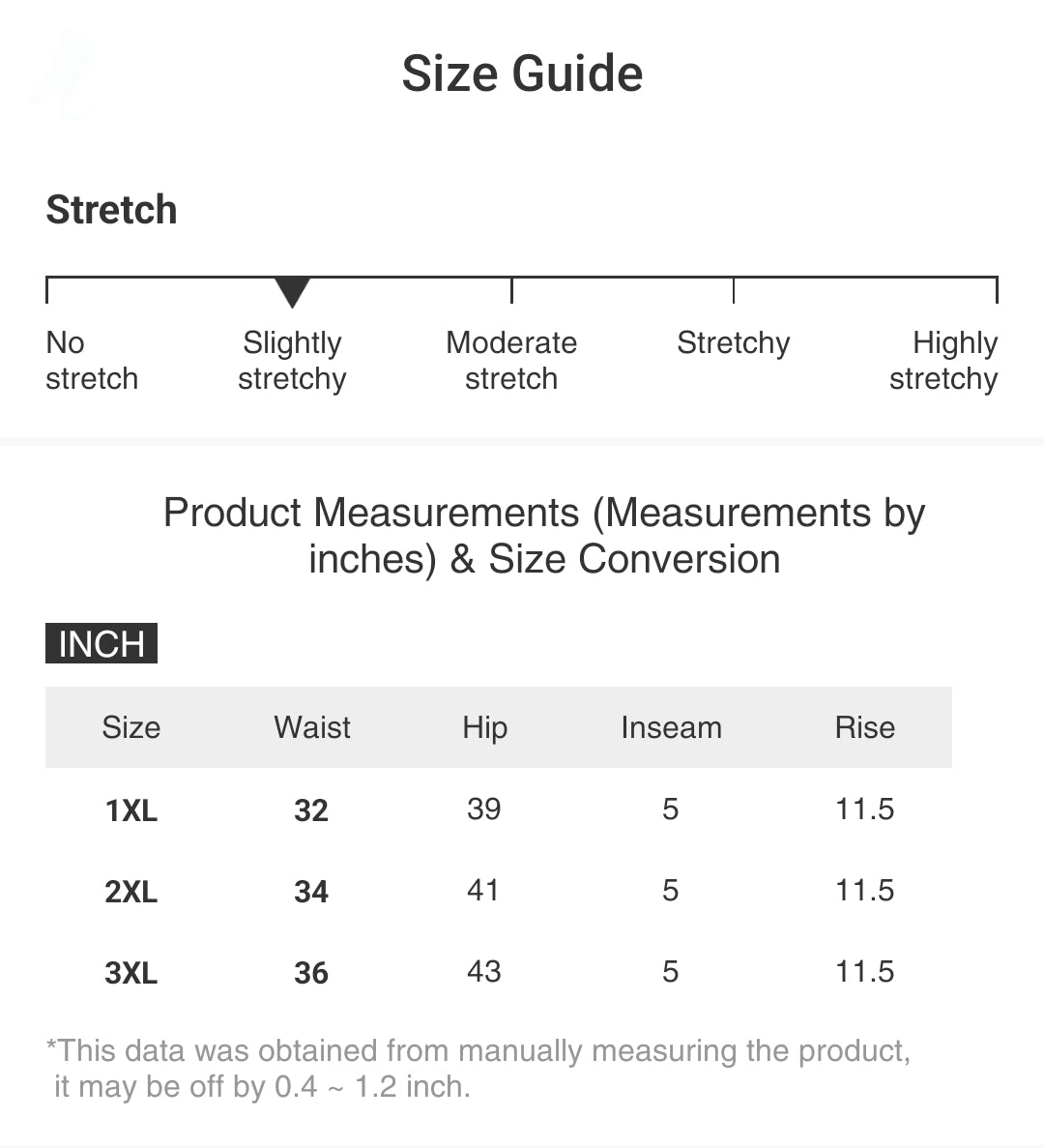 | Size | Waist | Hip | Inseam | Rise |