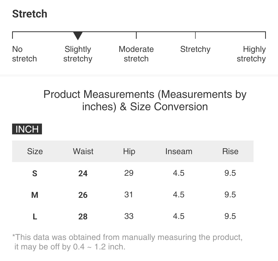 | Size | Waist | Hip | Inseam | Rise |