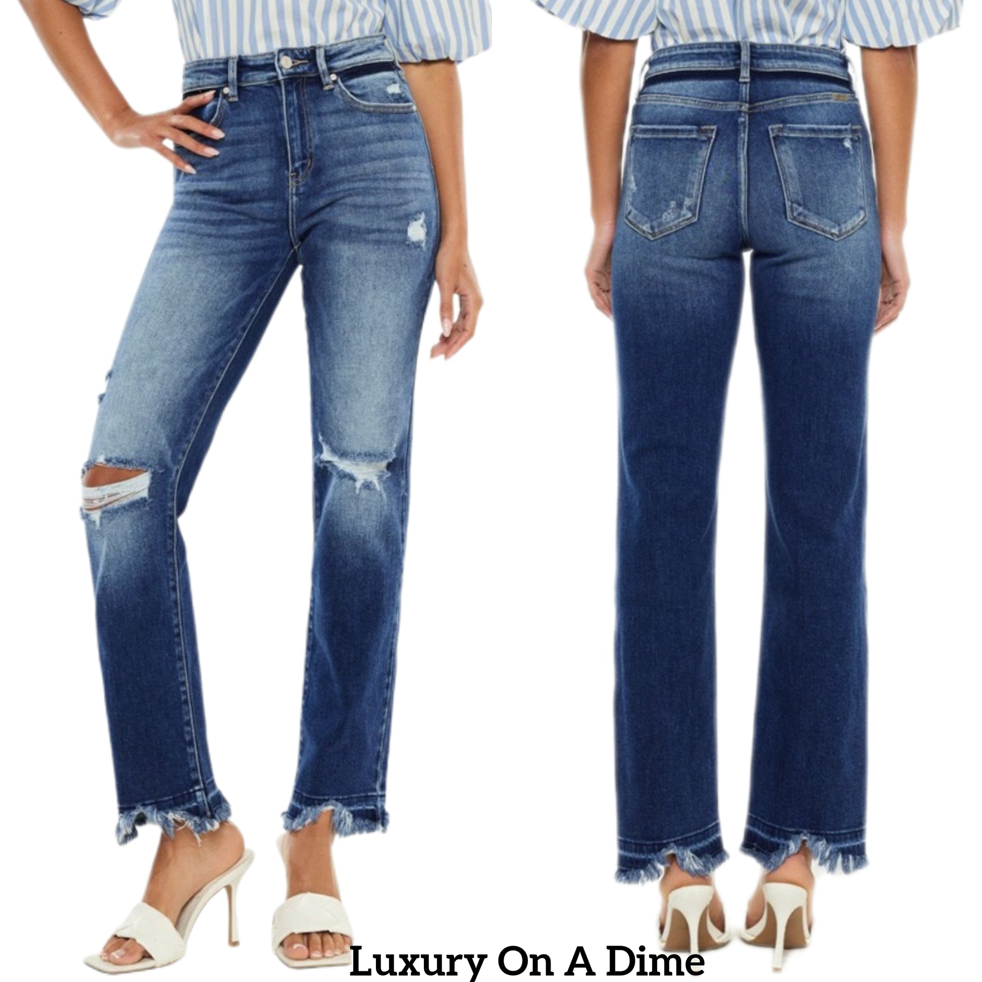 KanCan High-Rise Waist Slim Jeans Torn Distressed Torn Straight Leg Denim Pants