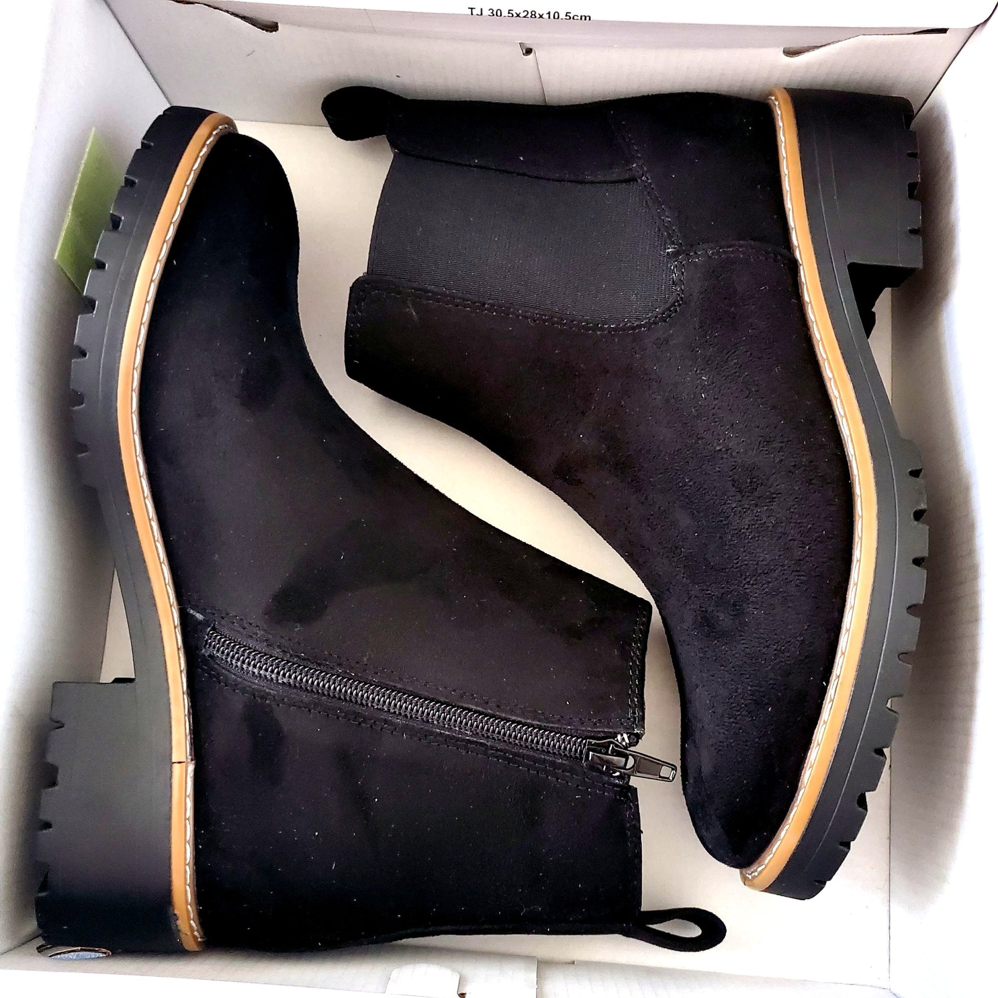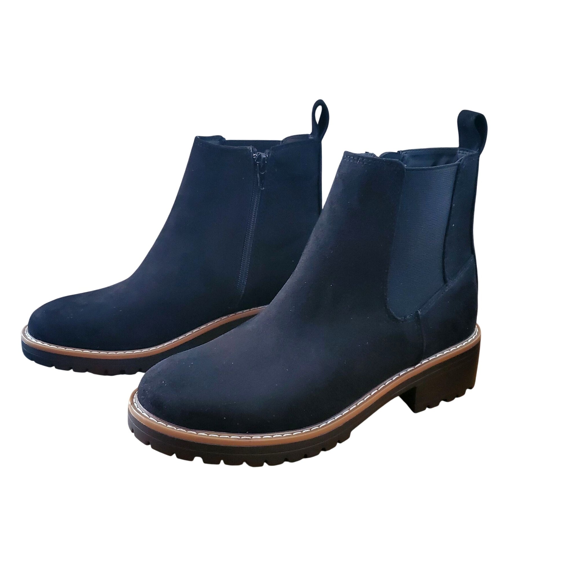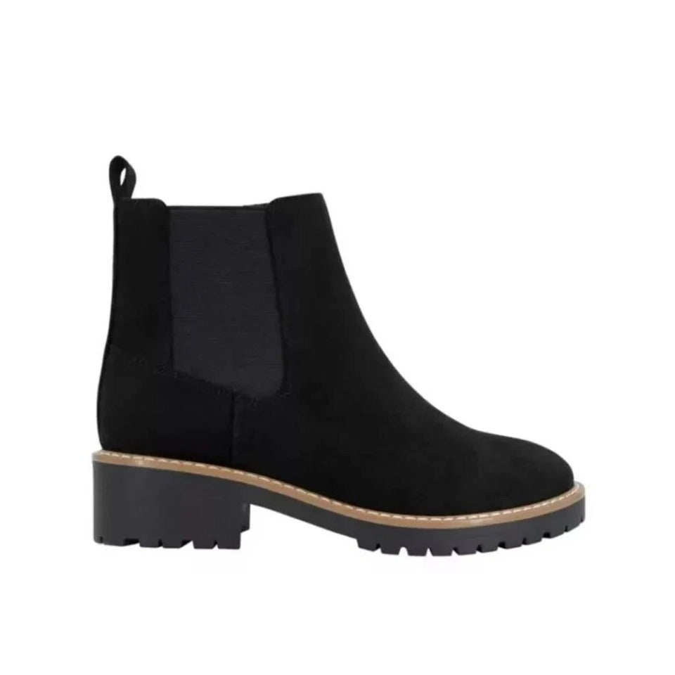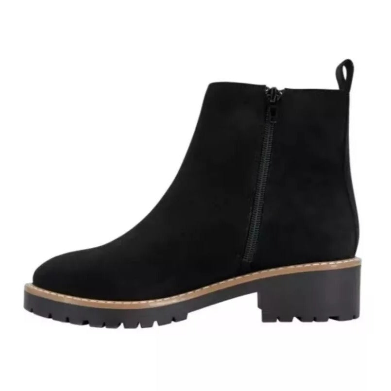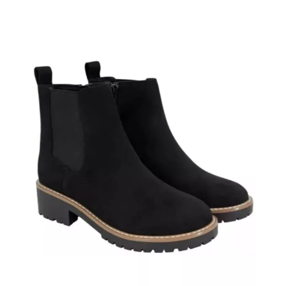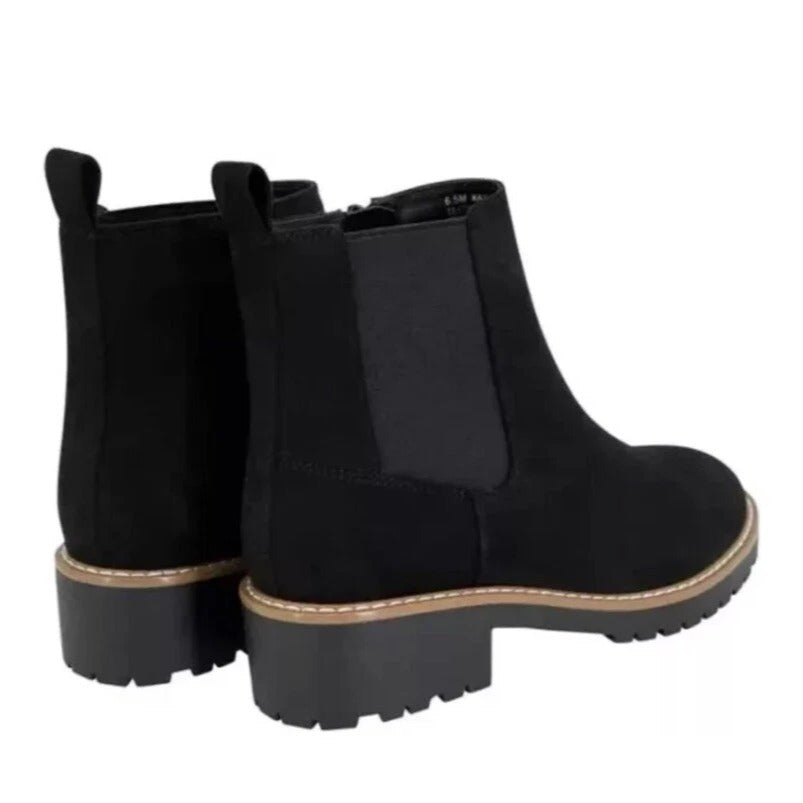 Kensie Kayla Chelsea Boots Faux Suede Zipper Ankle Bootie Chunky Shoes Black