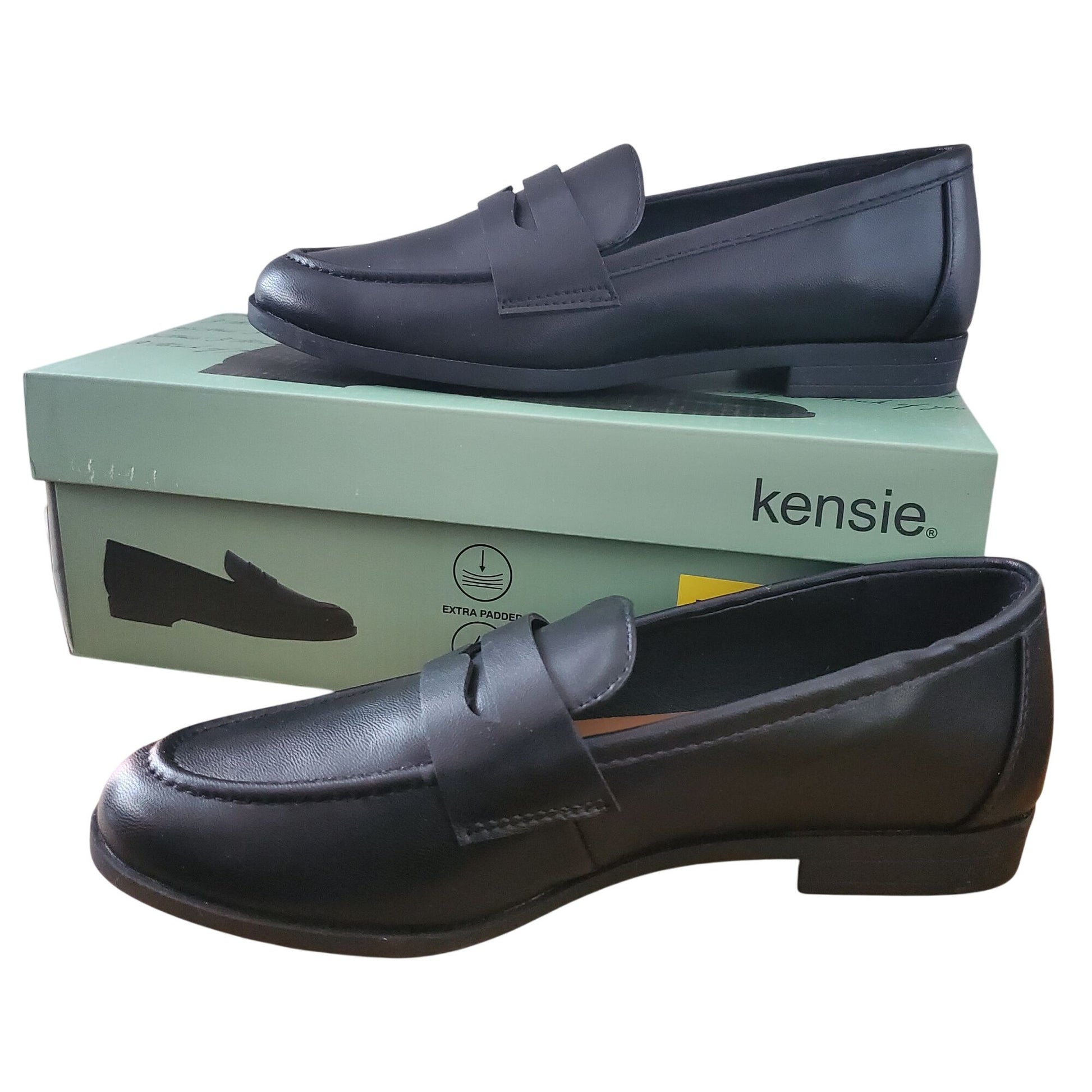 Kensie Penny Loafer Gitty Slip-on Driver Shoes Faux Smooth Leather Black