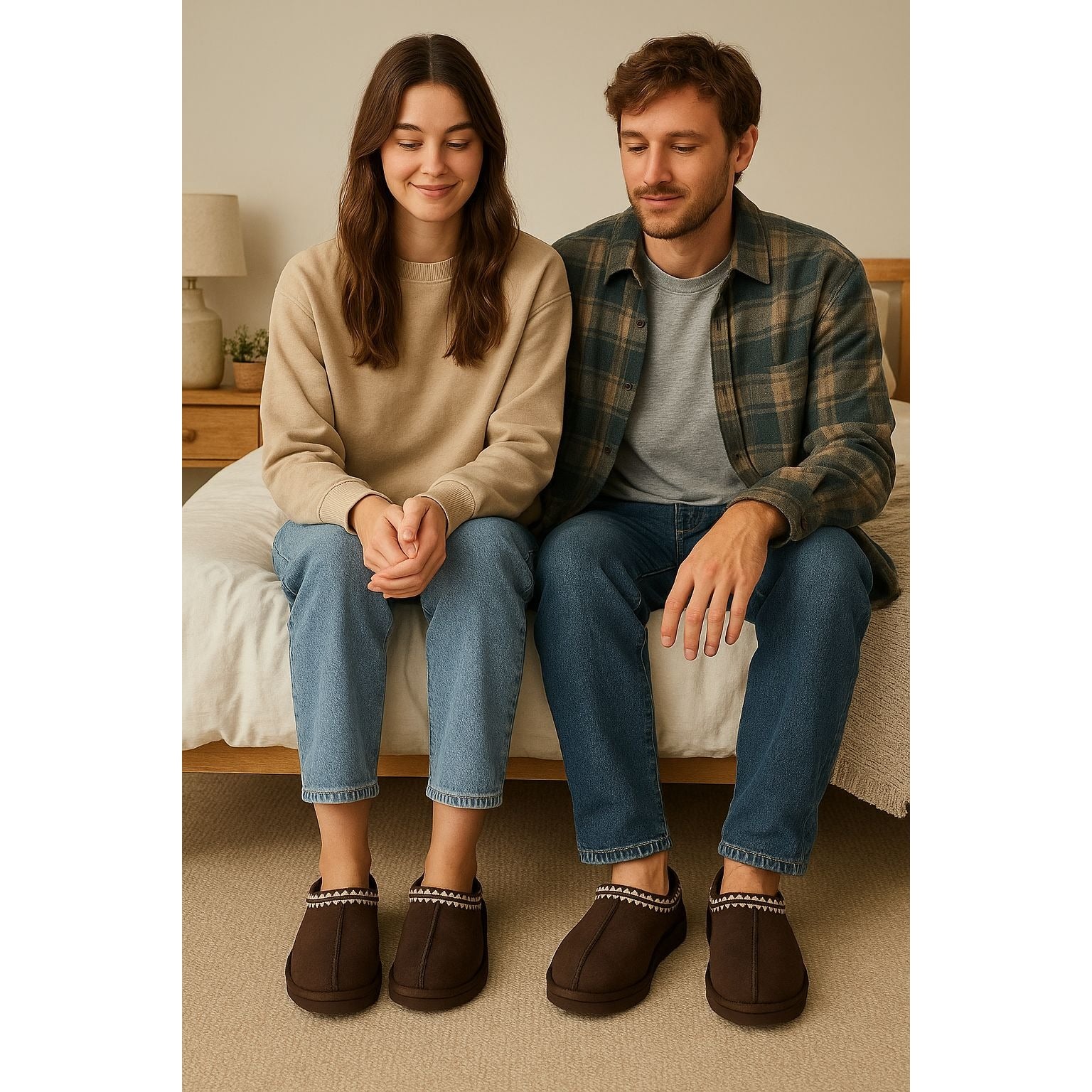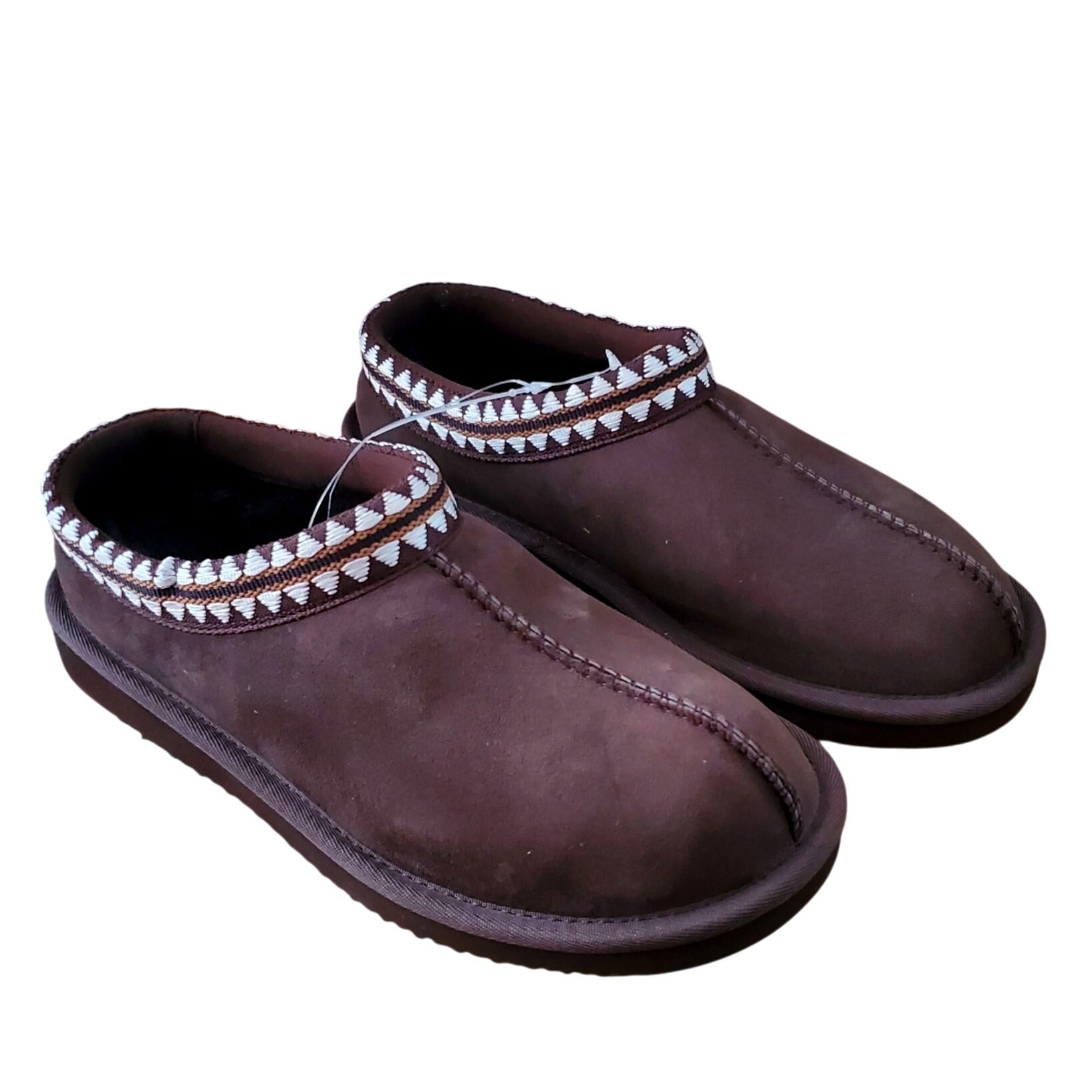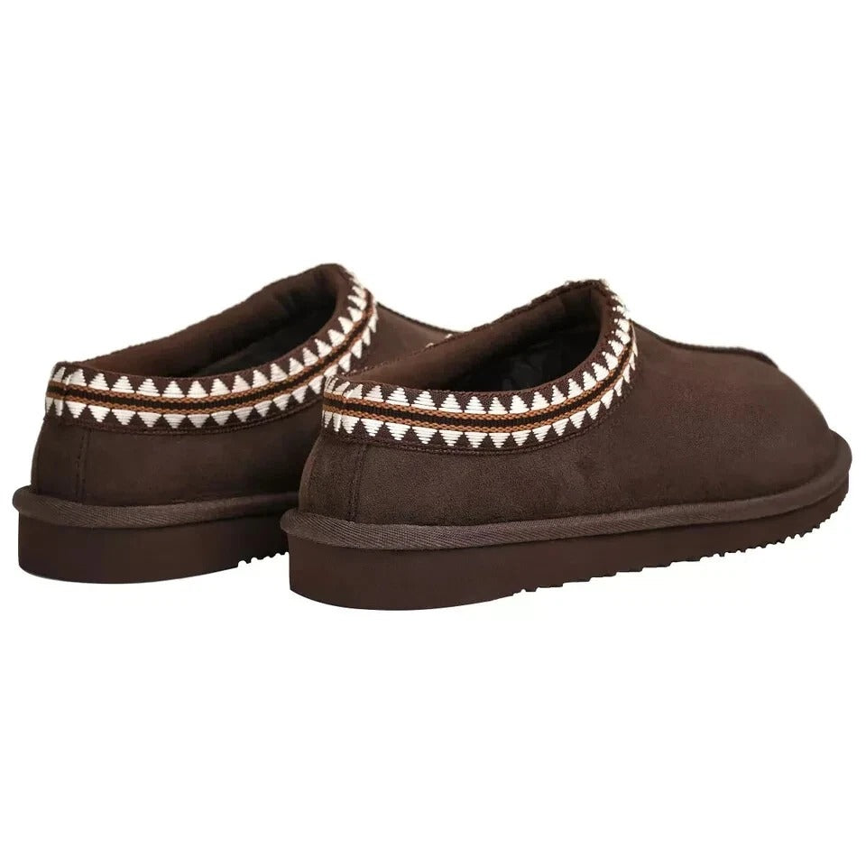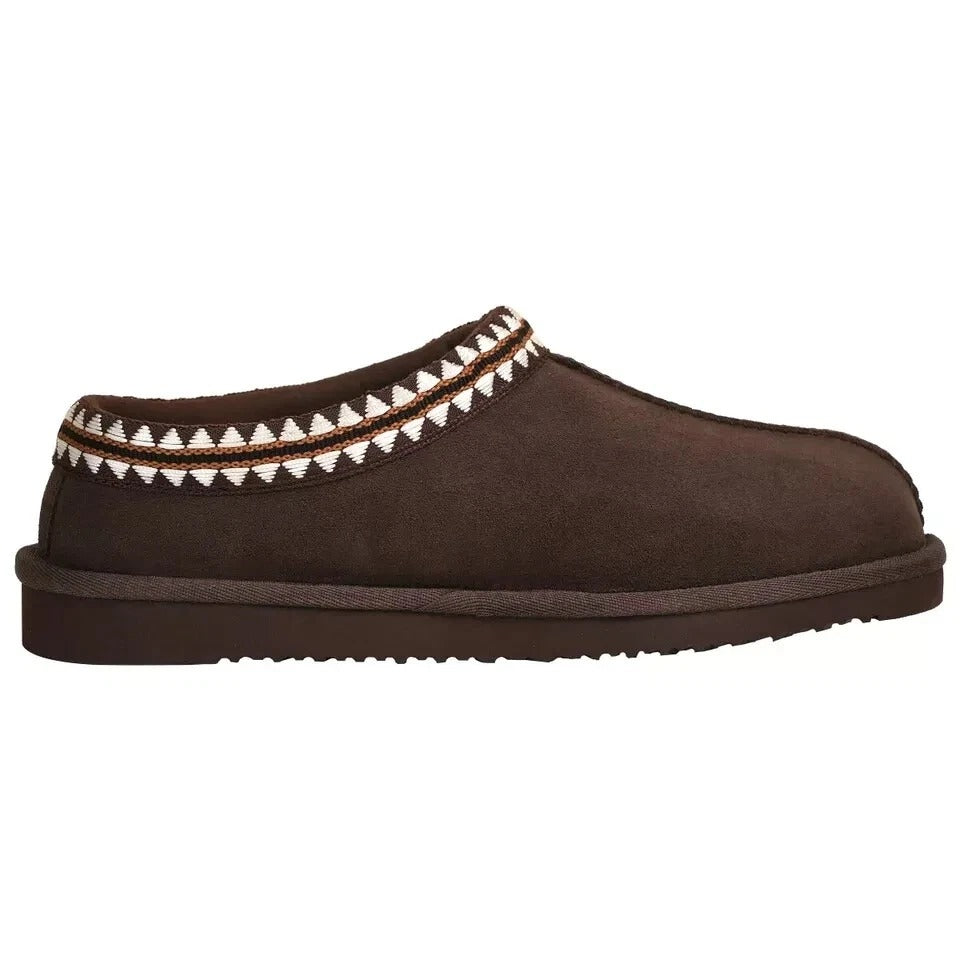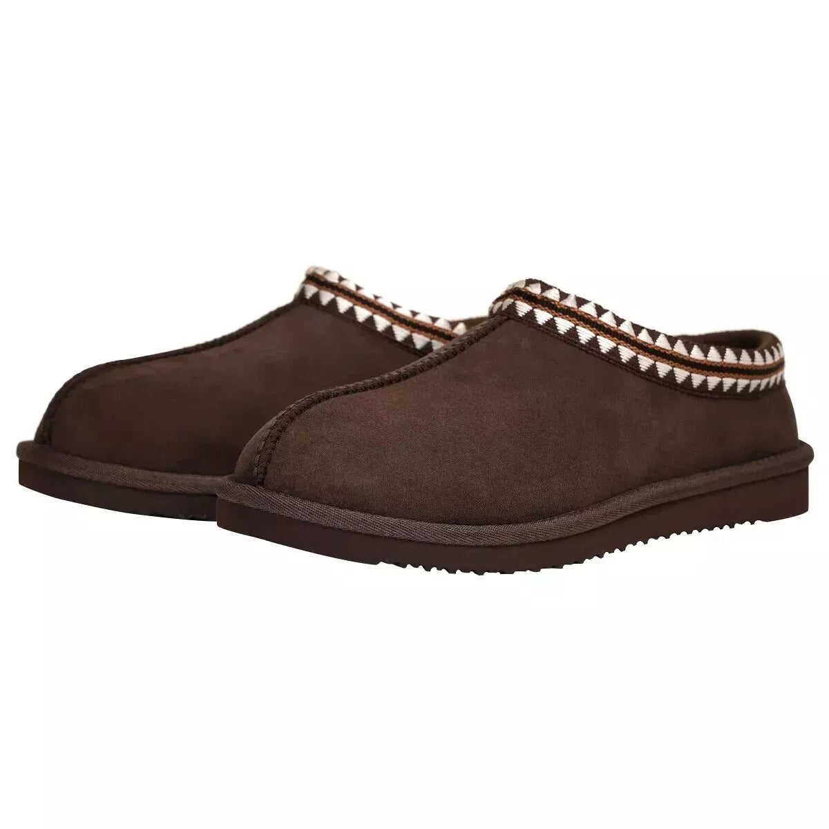 Kirkland Unisex Men Women Suede Sheepskin Slip-on Shearling Slippers Embroidered Shoes