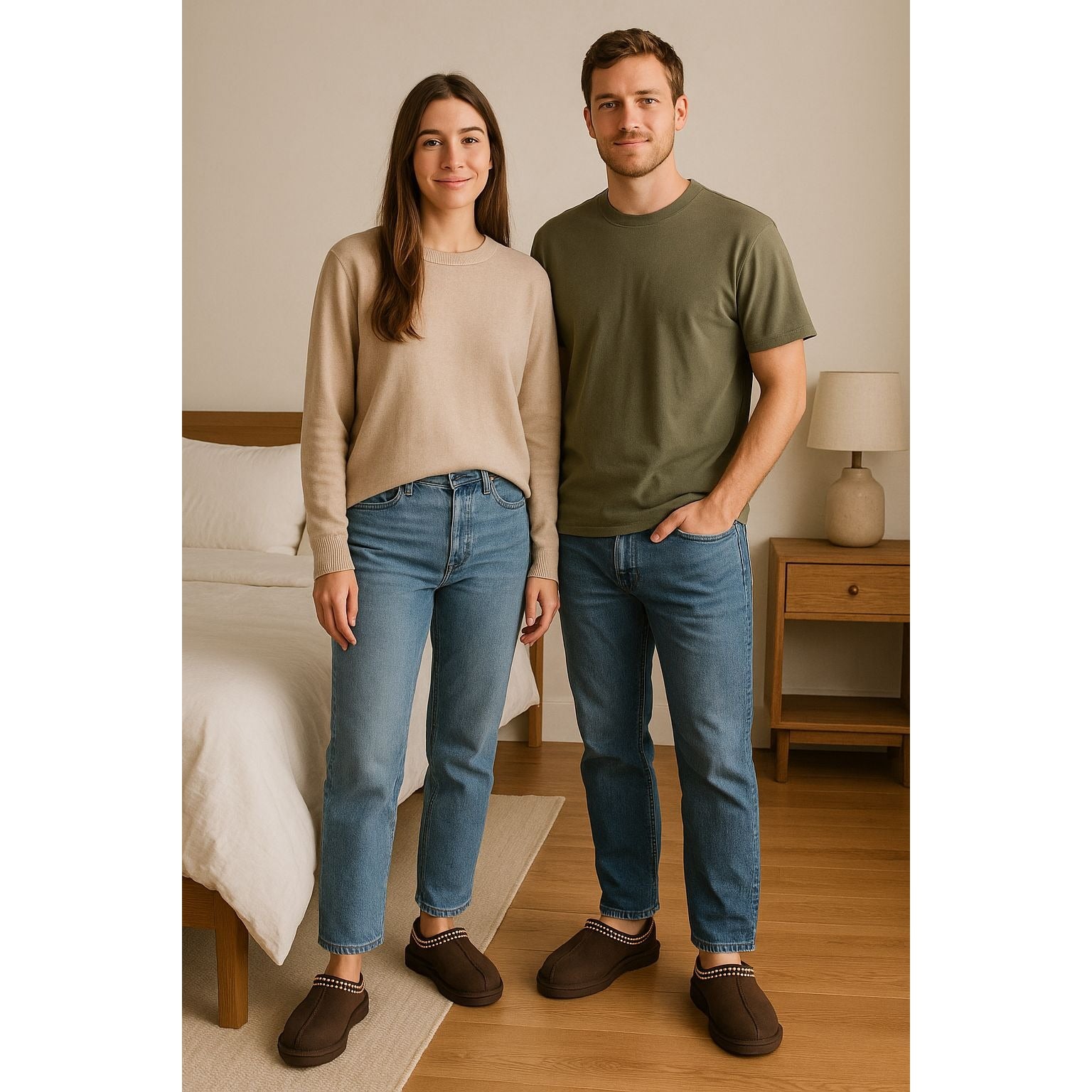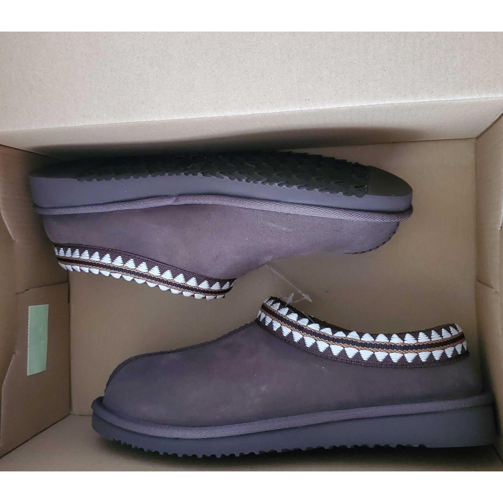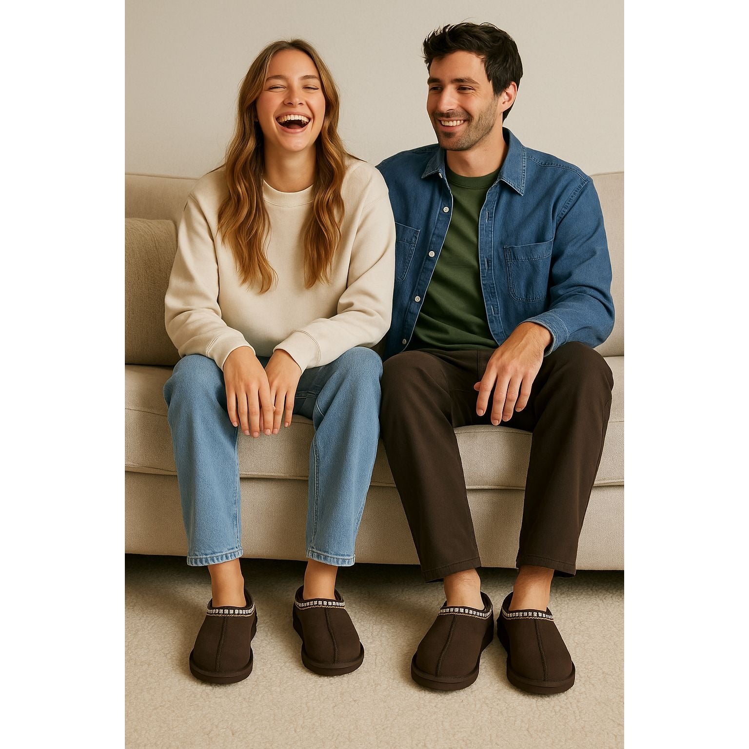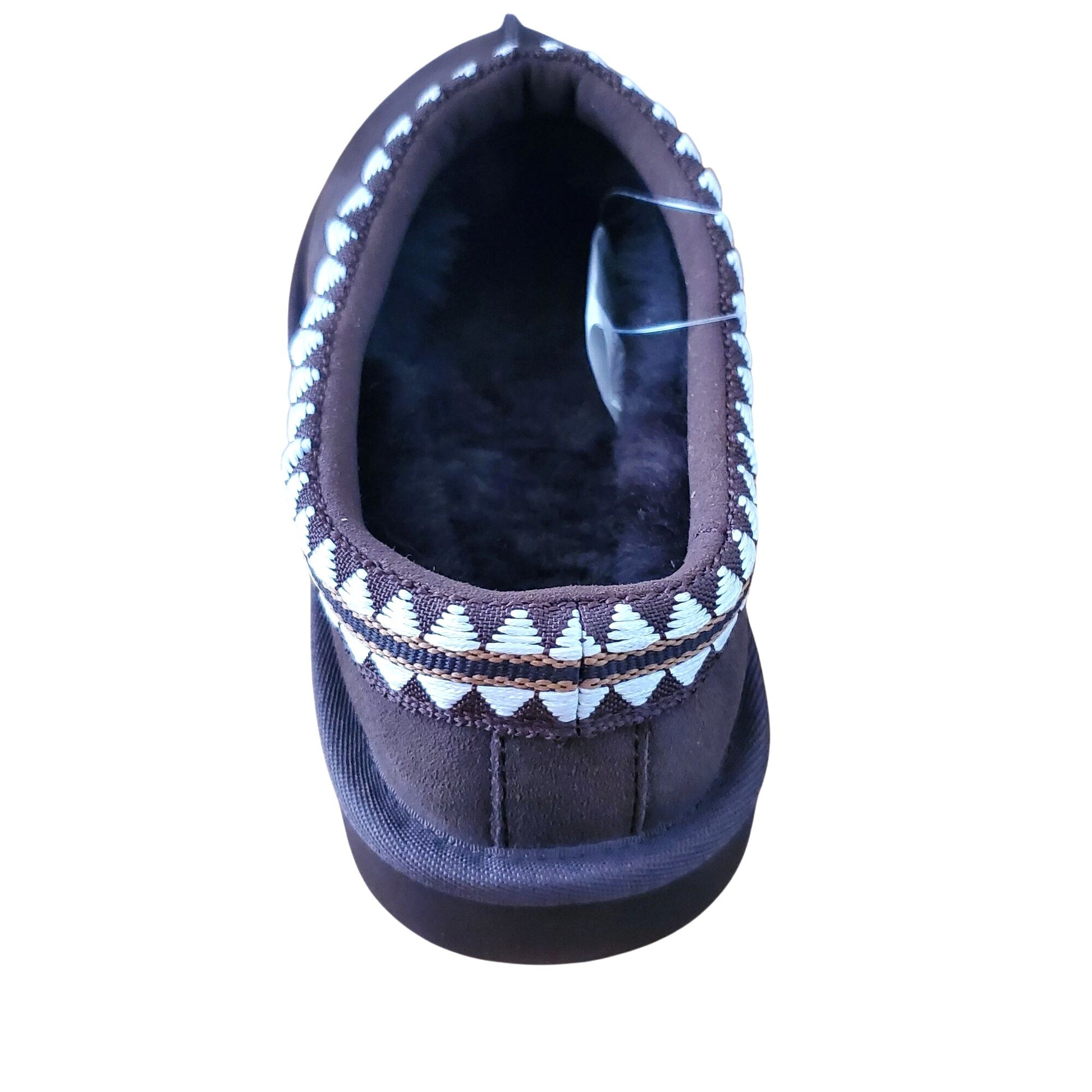 Kirkland Unisex Men Women Suede Sheepskin Slip-on Shearling Slippers Embroidered Shoes
