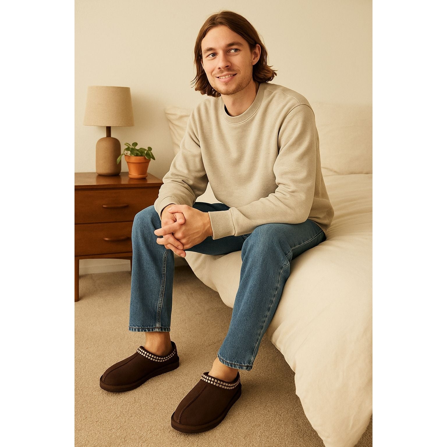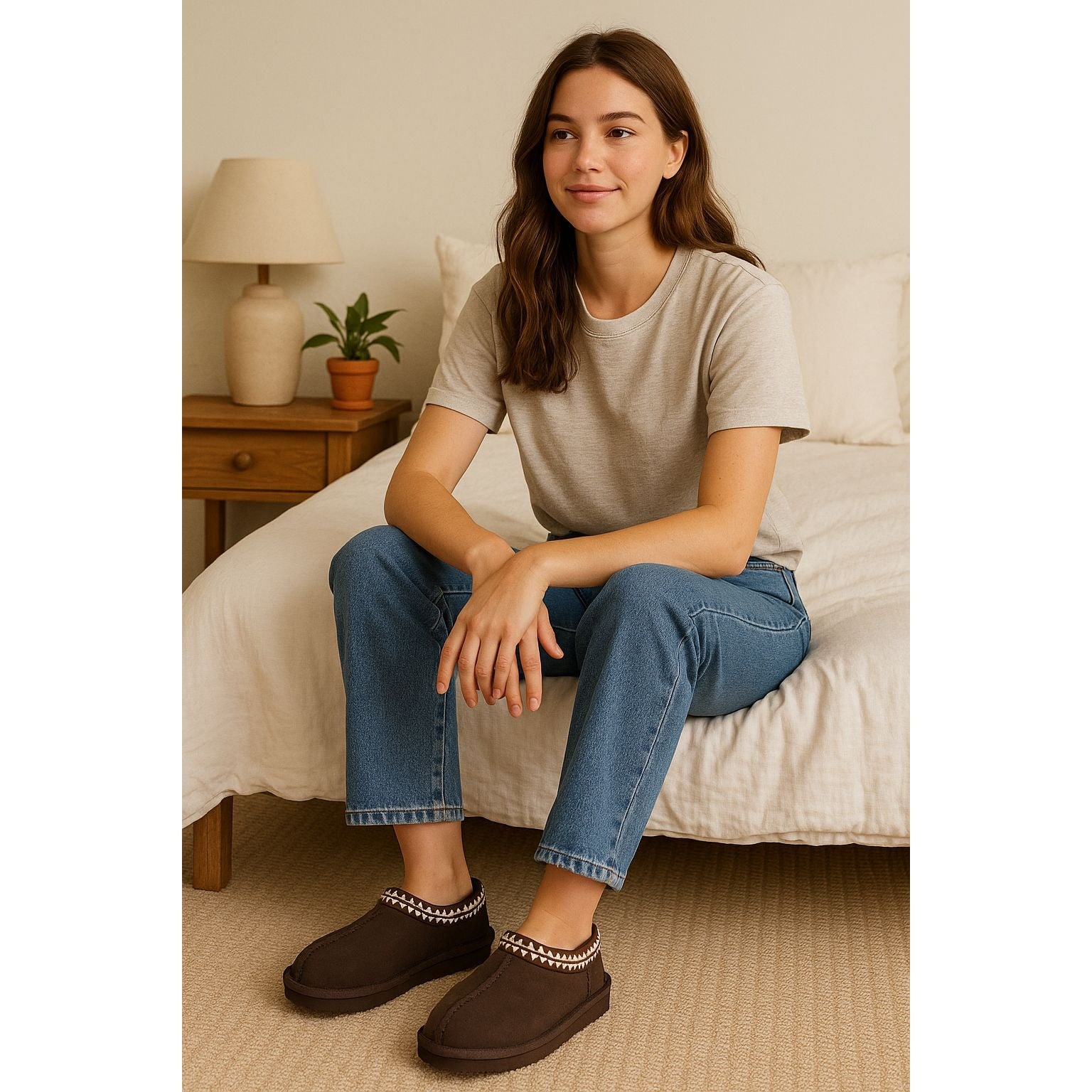 Designed with comfort at its core, this slipper blends functional design with a soft, boho-inspired edge. The cozy shearling lining feels luxurious against the skin, while the embroidered trim adds a touch of artisan texture that leans into quiet, rustic style. With its slip-on silhouette and lightweight EVA sole, it’s perfect for relaxed mornings, mountain cabins, or stepping out to grab coffee. Part of a gorpcore mindset that values practical, tactile materials, this piece balances indoor comfort with outdoor-readiness. Staying in or heading off-grid, it’s a grounded favorite for the season.