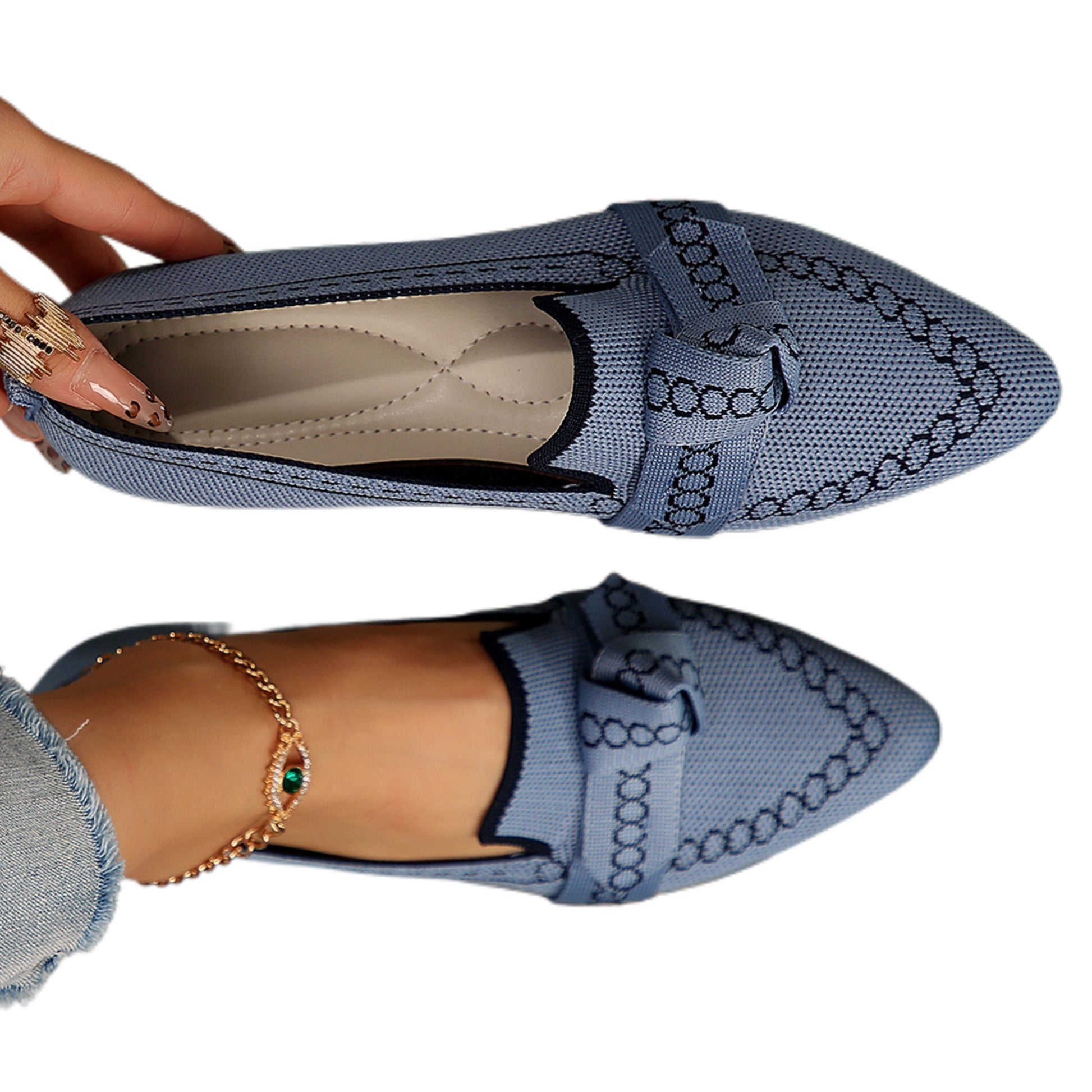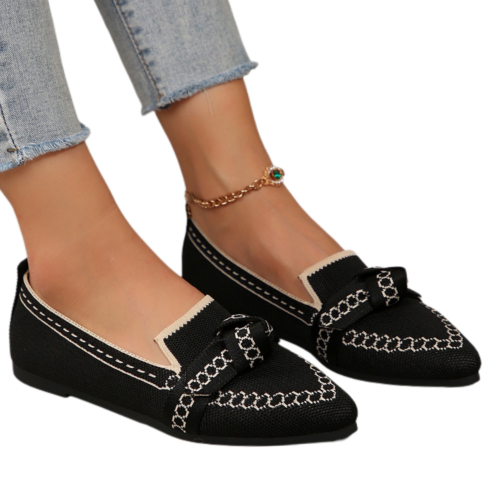 Pointed Bow Top Knit Ballet Flat Casual Loafer Contrast Color Trim Slip-on Shoes