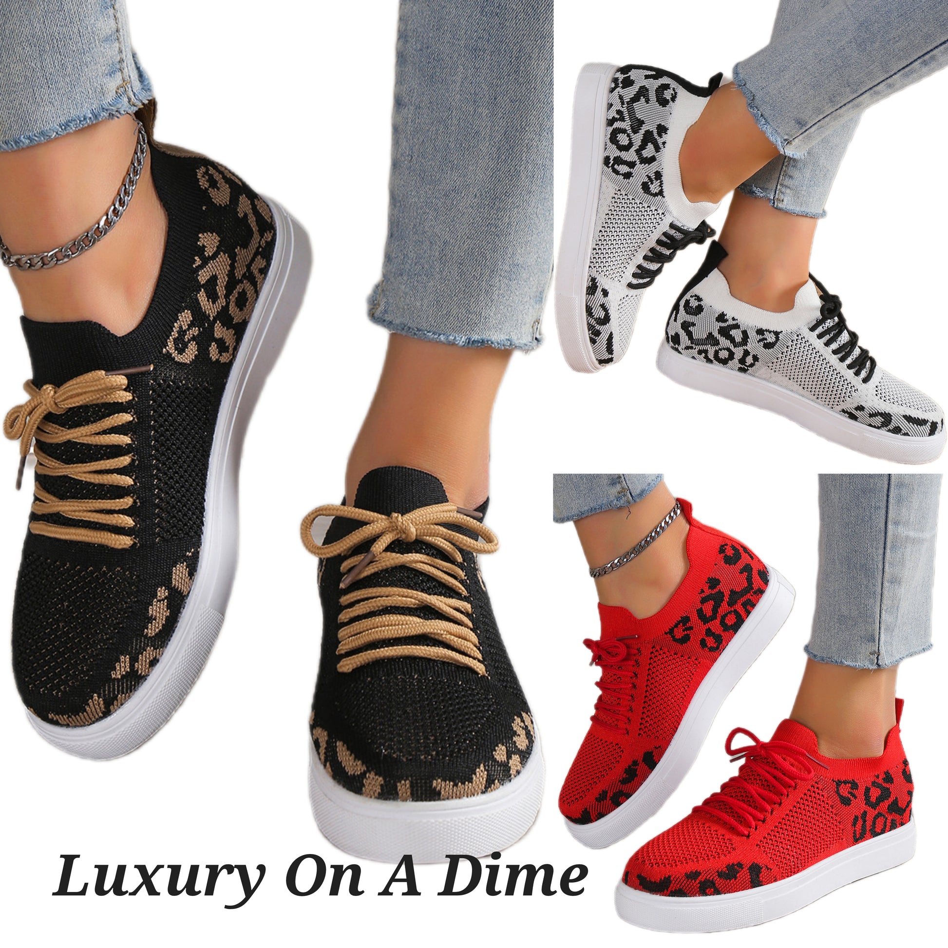 Strut your stuff in style with these trendy leopard print fashion sneakers.