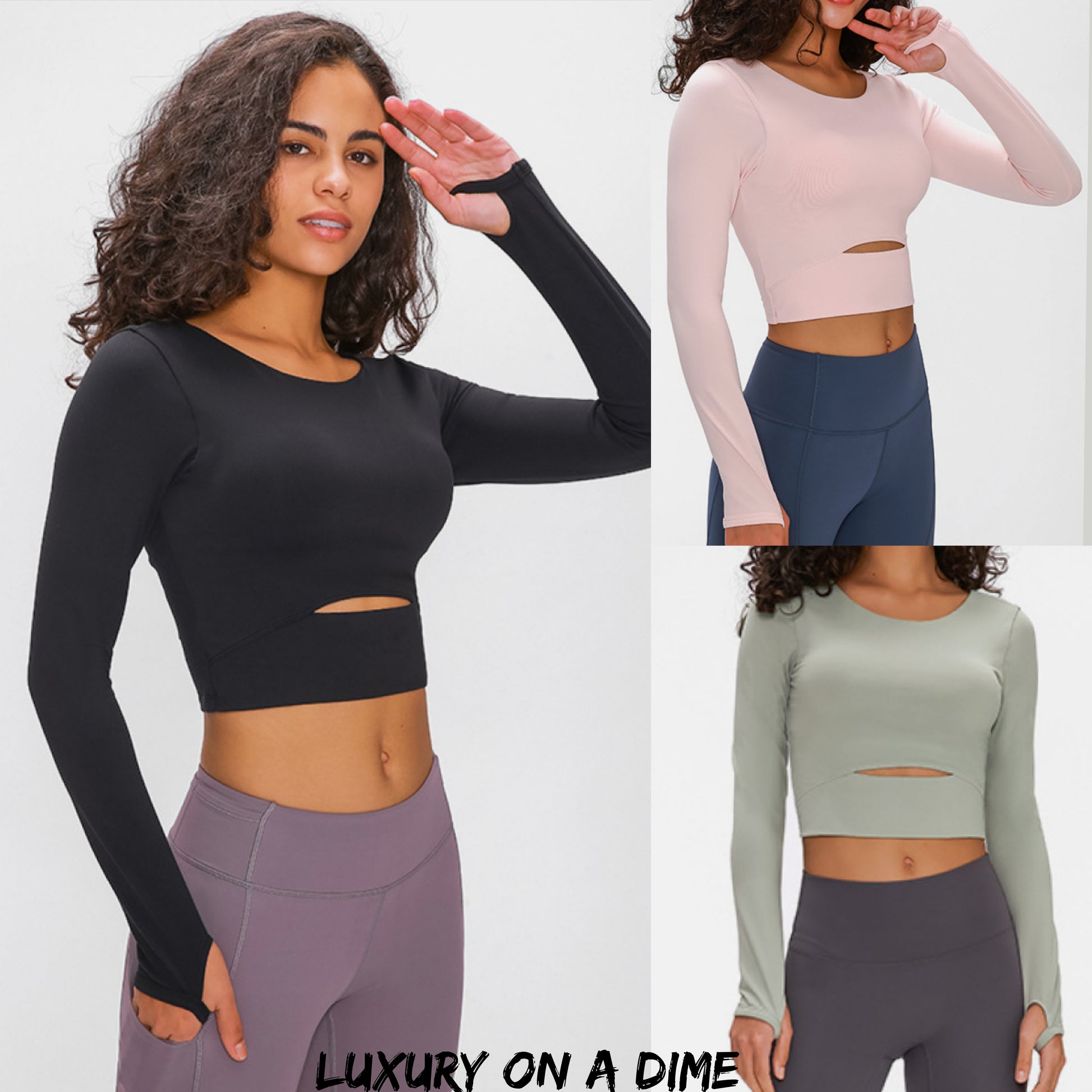 Long Sleeve Athletic Cut-out Yoga Activewear Crop Top (4 colors available)