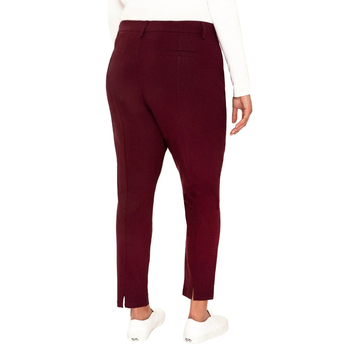 Mario Serrani Women Textured Pull-On Ankle Pants Slit Hem Stretch Slim Fit