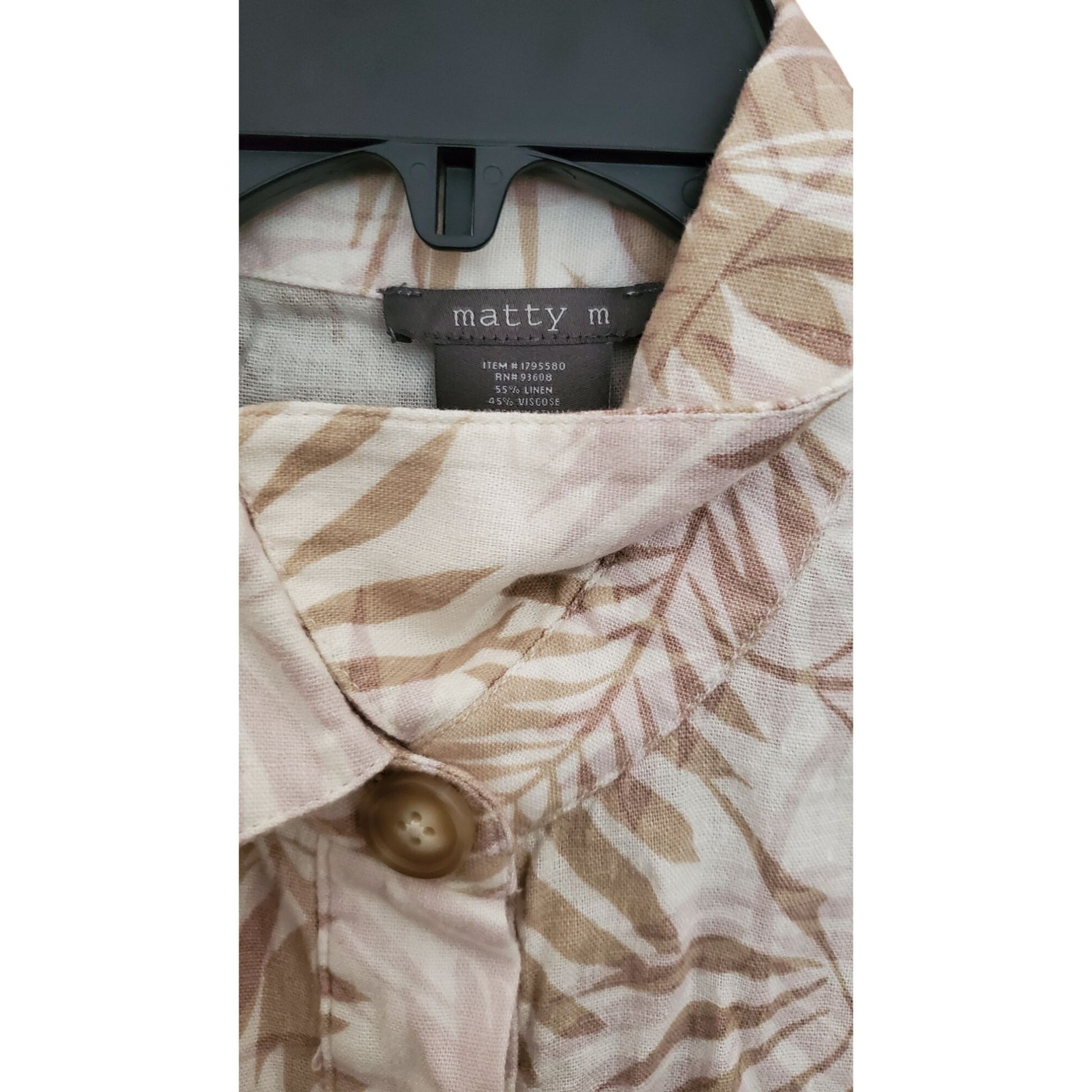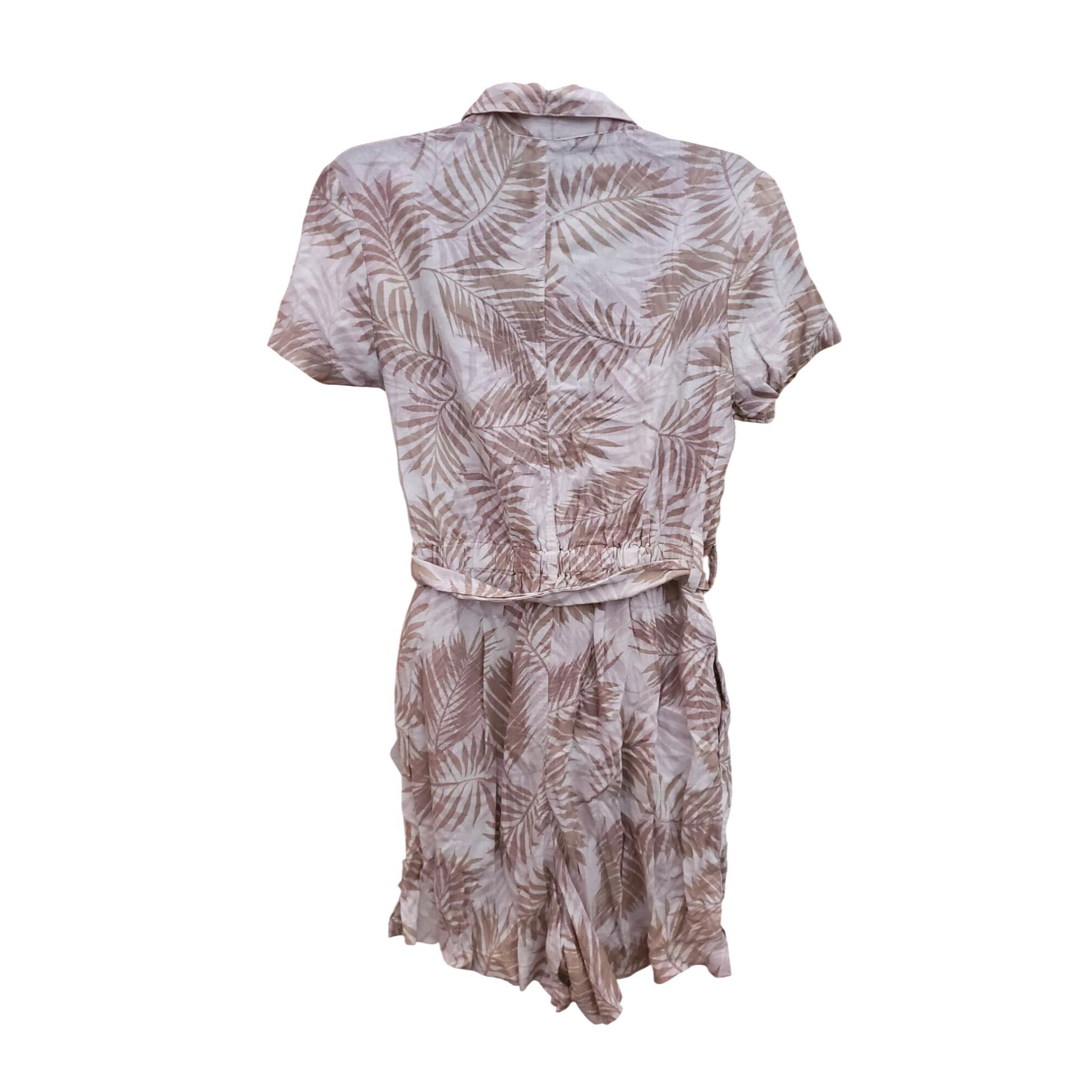 Matty M Women's Linen Blend Button Front Shorts Romper Tropical Palm One-piece