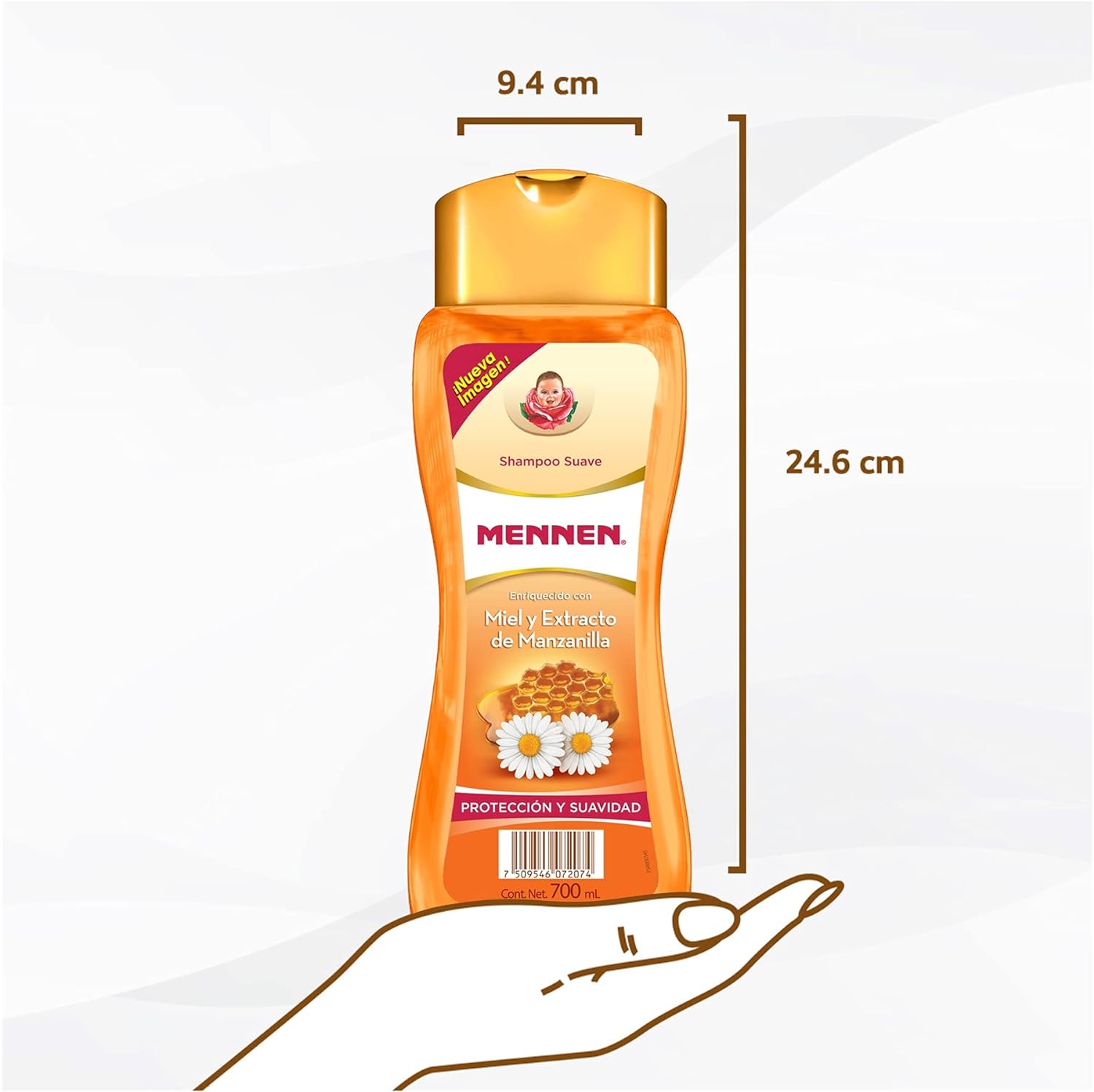 Shampoo Mennen te da mayor suavidad, su formula contiene miel y manzanilla, limpia suavemente el cabello de toda la familia, lo cuida y lo protege dejandolo con brillo, lleno de vitalidad y con un agradable aroma.