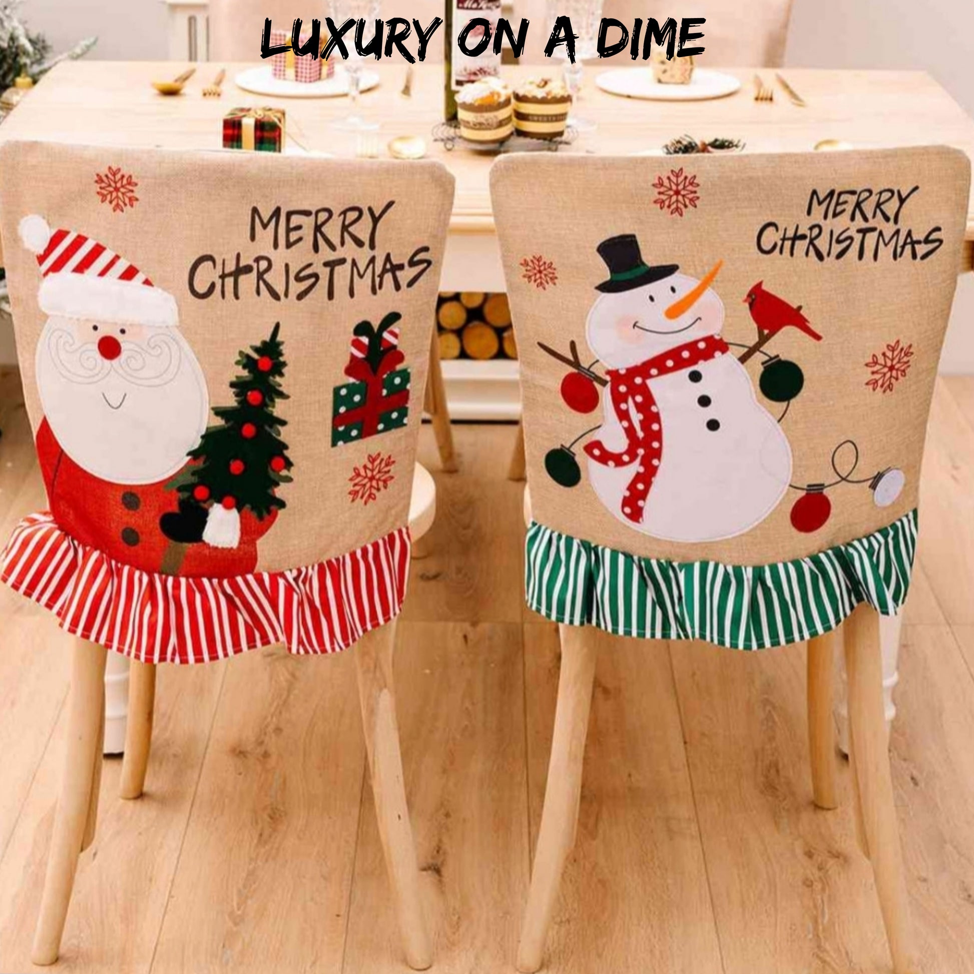 Merry Christmas Santa Snowman Festive Farmhouse Chair Slip Cover Home Decor