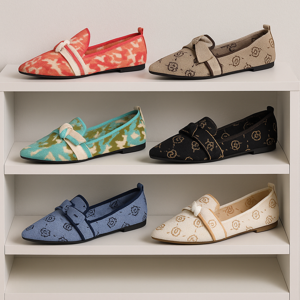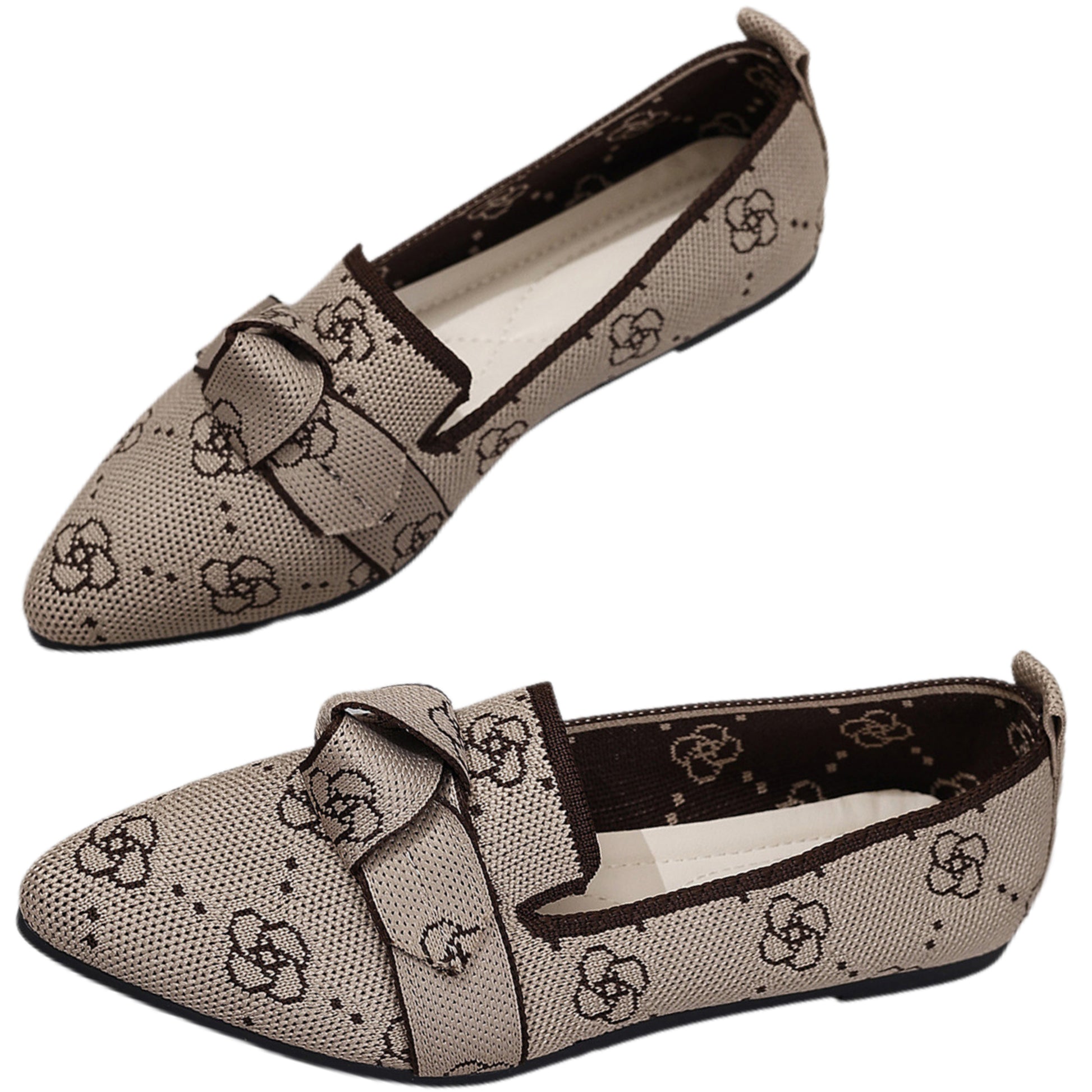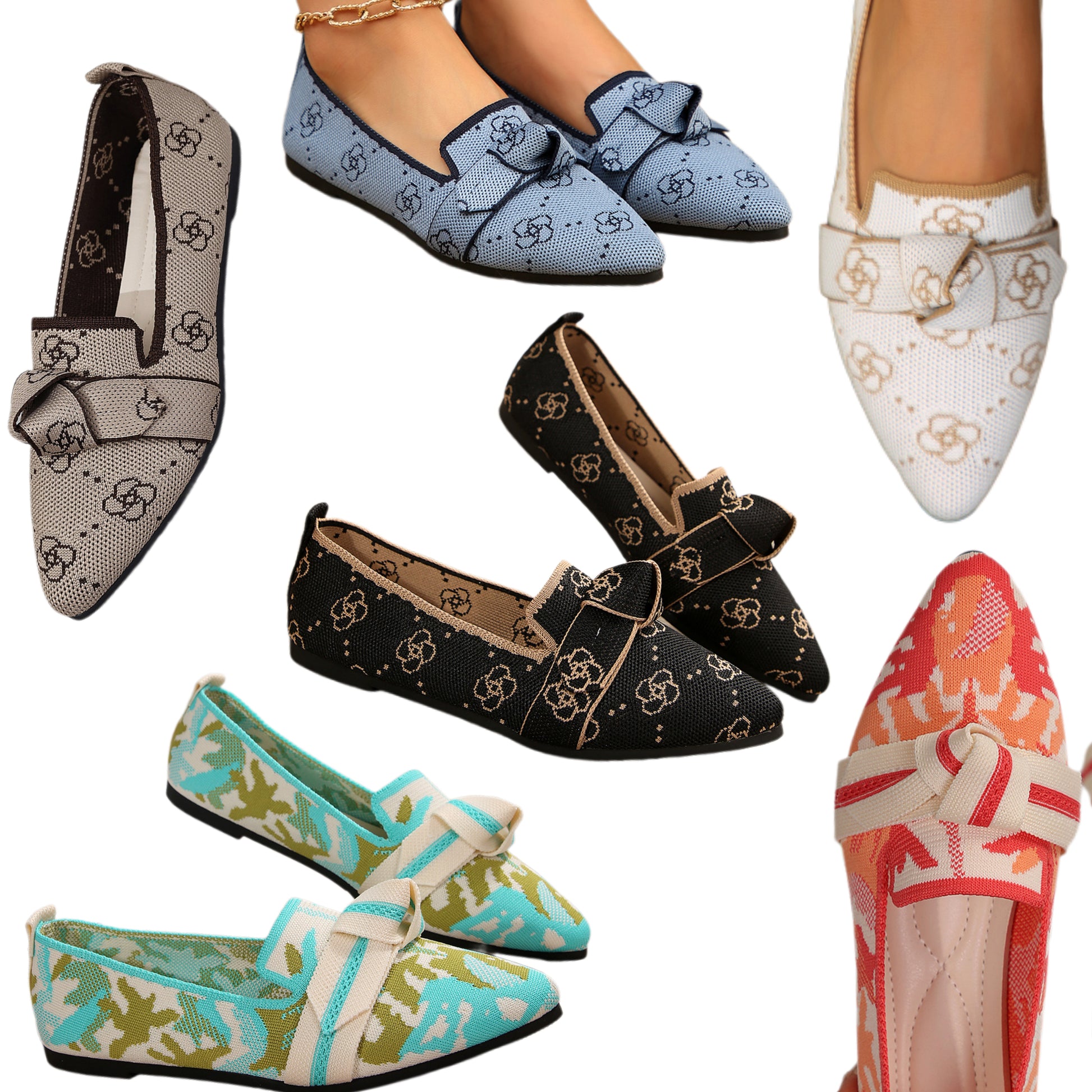 Pointed Bow Top Knit Contrasting Print Ballet Flat Casual Loafer Slip-on Shoes