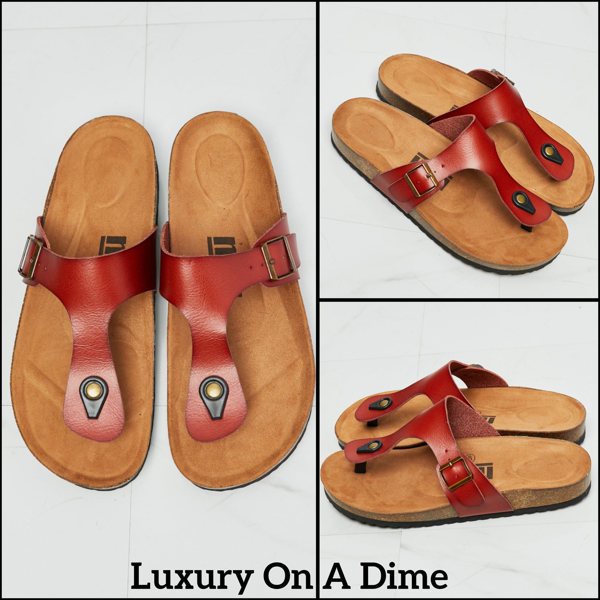 - Material: Faux PU leather / Cork sole