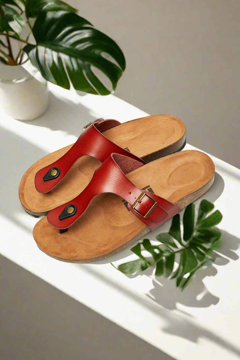 Vegan Cork Shoes Drift Away T-Strap Flip-Flop Boho Minimalist Slip-on Sandals