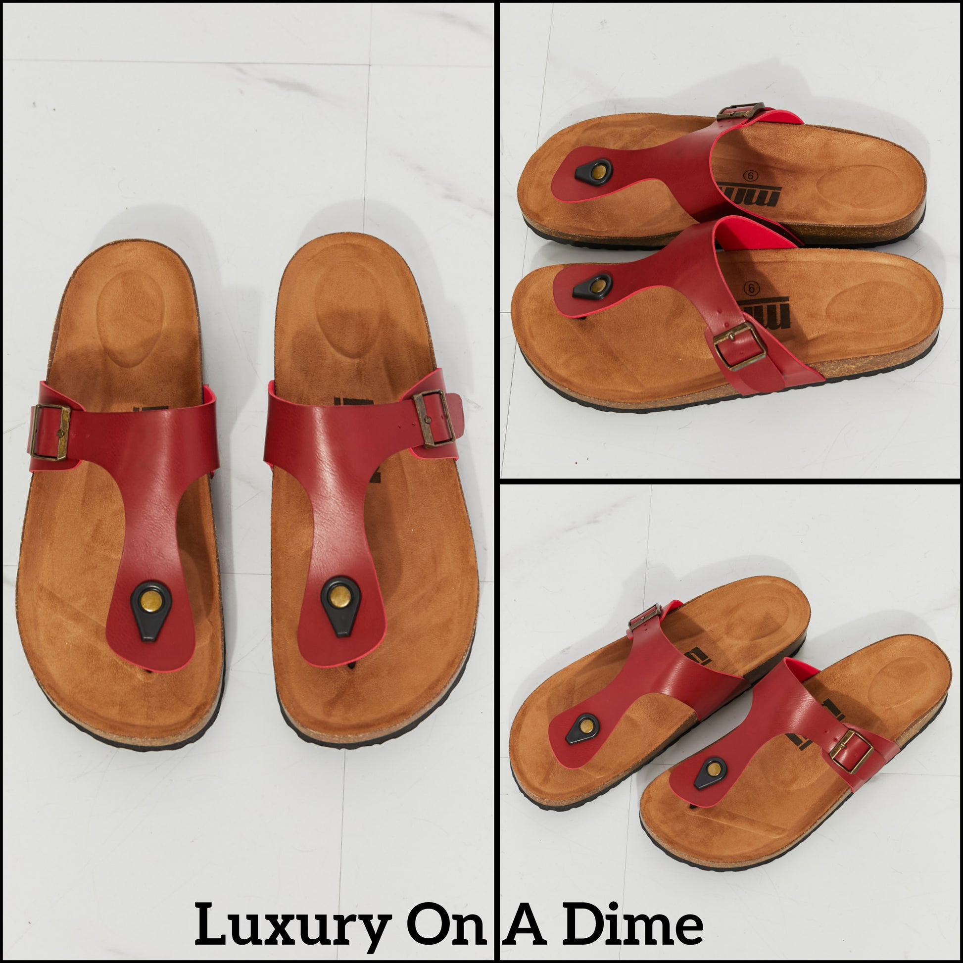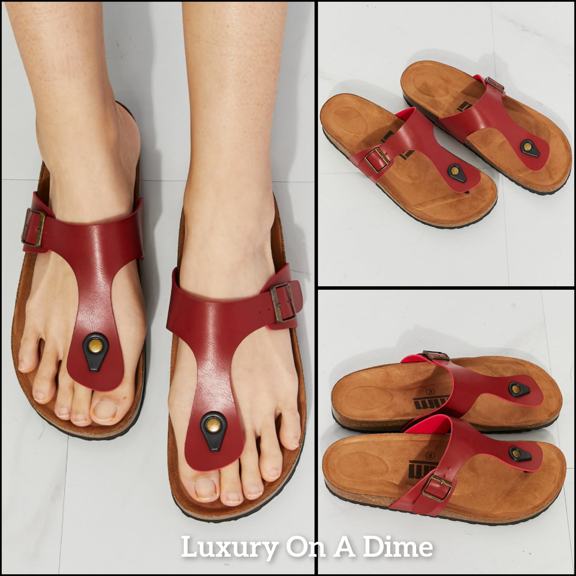 Vegan Cork Shoes Drift Away T-Strap Flip-Flop Boho Minimalist Slip-on Sandals Burgundy