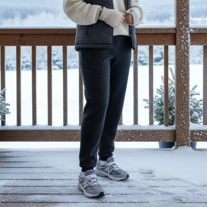 Designed for comfort-driven movement and everyday lounging versatility, these fleece-lined joggers offer a polished take on relaxed athletic wear. The softly structured silhouette has tapered legs with elastic ankle hems, creating a clean, modern profile while remaining effortlessly wearable. Interior delivers a plush, cozy feel ideal for training sessions, casual walks, travel days, or laid-back lounging. Functional side and back patch pockets add everyday practicality and a streamlined look, while the pull-on waistband ensures flexibility and ease throughout the day. Performance comfort mindful design, this style reflects modern athleisure with a relaxed, intentional aesthetic suited for both active and off-duty lifestyles.
