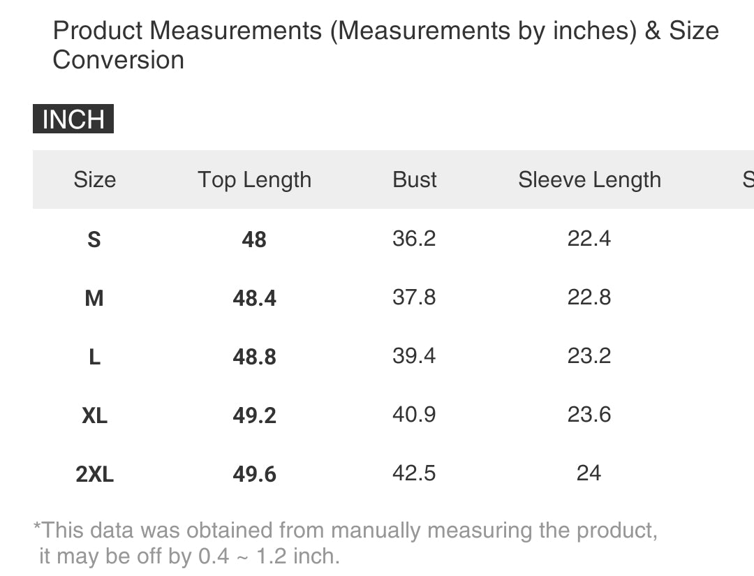 Size | Top Length | Bust | Sleeve Length | Shoulder |