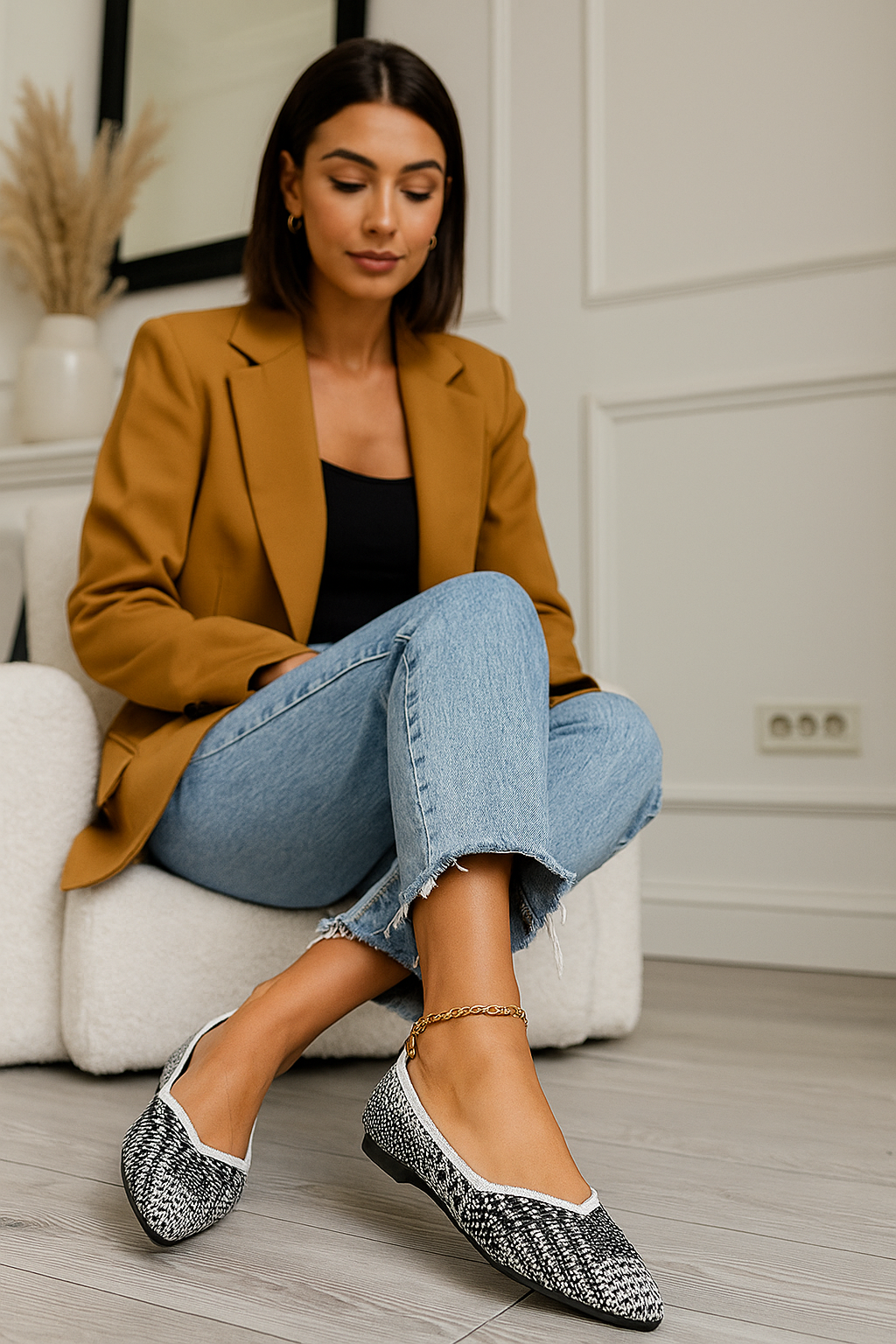 Blending timeless sophistication with modern ease, these woven loafers are designed to elevate any wardrobe with chic versatility. The pointed toe silhouette elongates the foot for a sleek, elegant profile. A woven texture and color contrasting intricate design adds a playful artisanal touch. The refined aesthetic, striking the perfect balance between classic and contemporary. Crafted with a soft, breathable upper, cushioned insole, and flexible sole, these slip-ons provide day-long comfort without sacrificing style. Easy to dress up or down, they embody a quiet luxury appeal ideal for workwear minimalism, Parisian chic, or polished preppy aesthetics. Whether paired with tailored trousers, jeans, or flowing skirts, these flats deliver a graceful finish for any occasion.