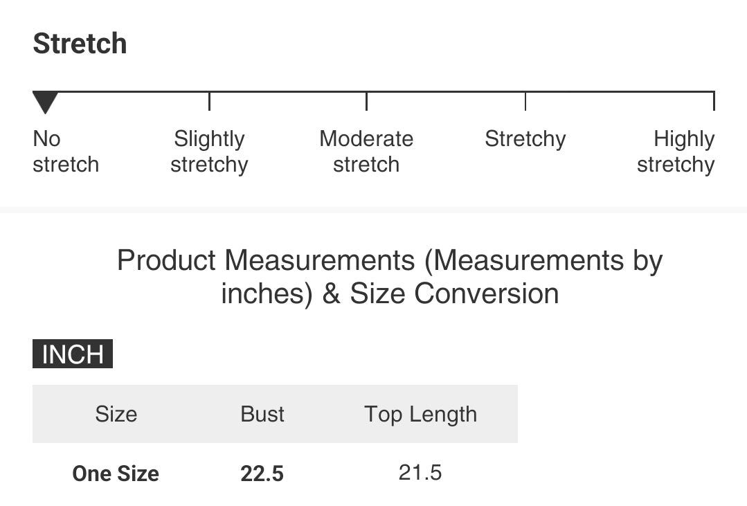 | Size | Bust | Top Length |