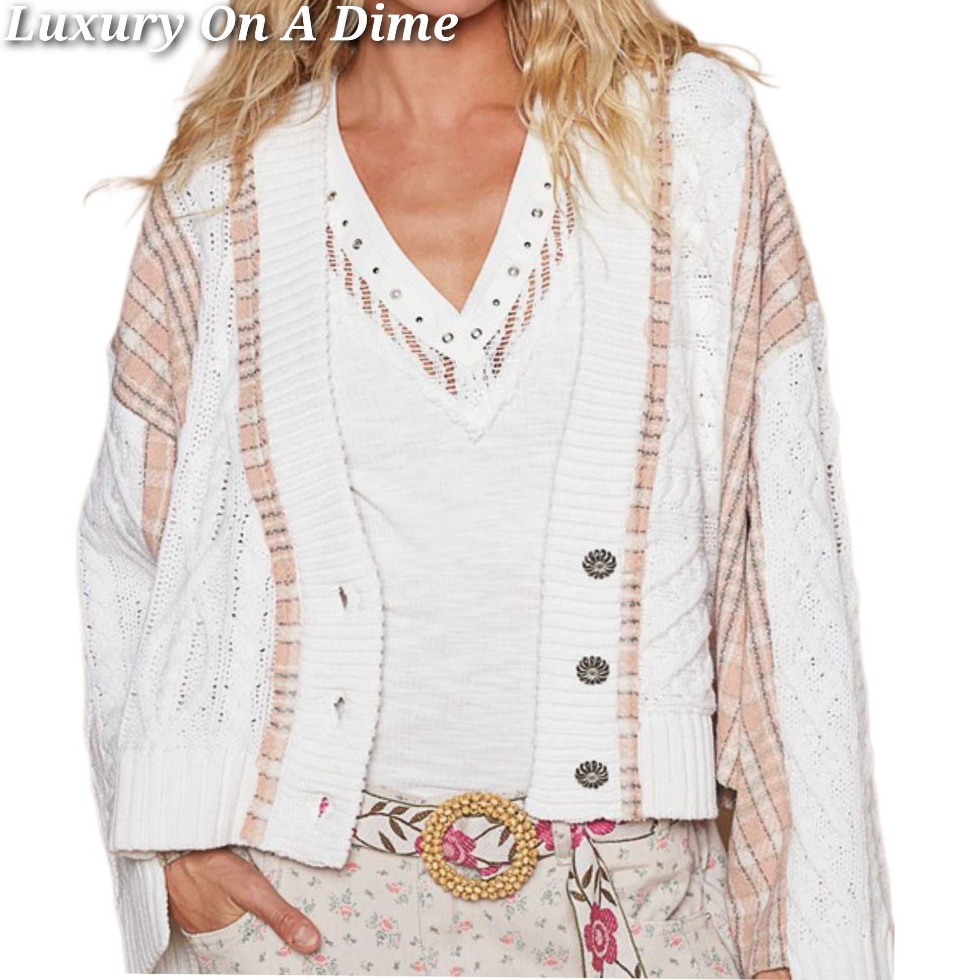 Featuring chunky cable knit with a touch of western trucker plaid patches give it cowgirl hippie look, while the construction provides both warmth and comfort.