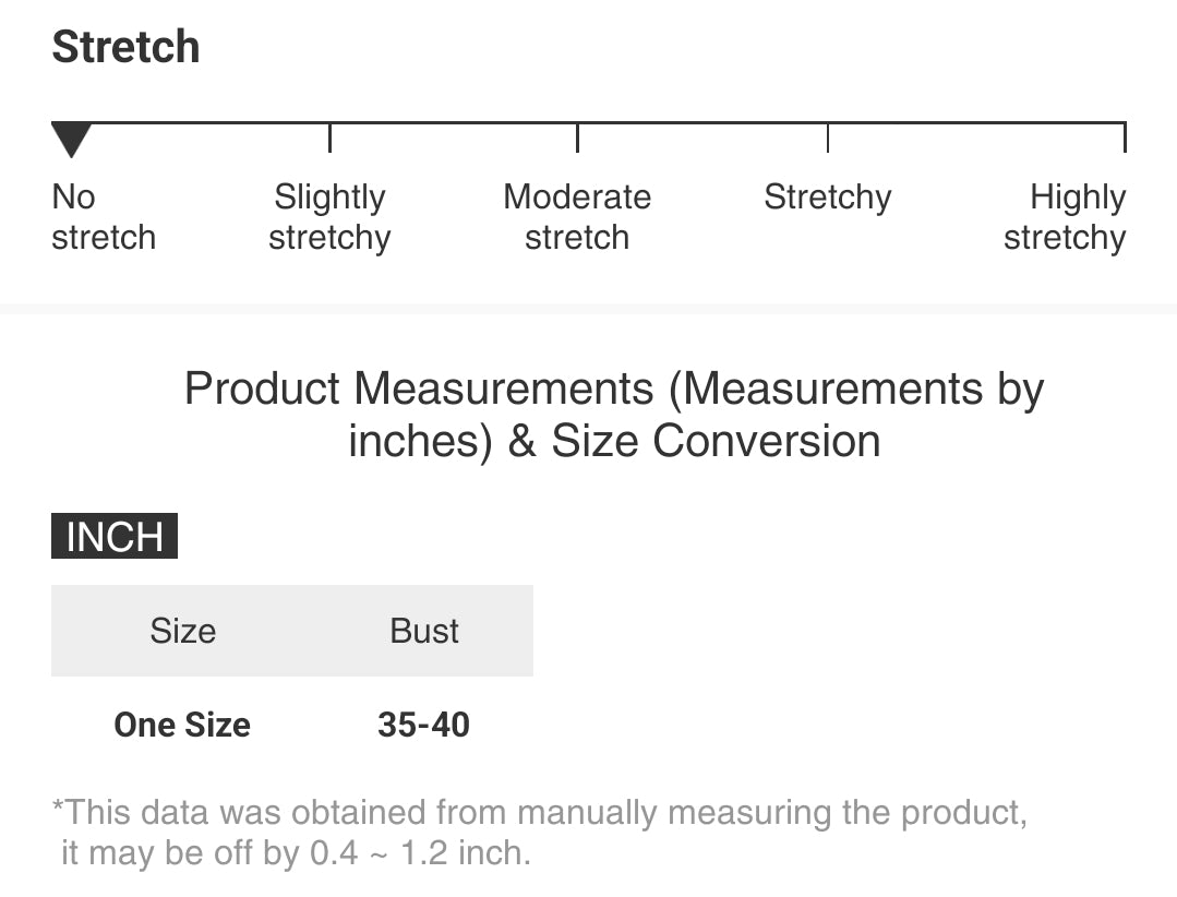 Product Measurements in inches and Size Conversion