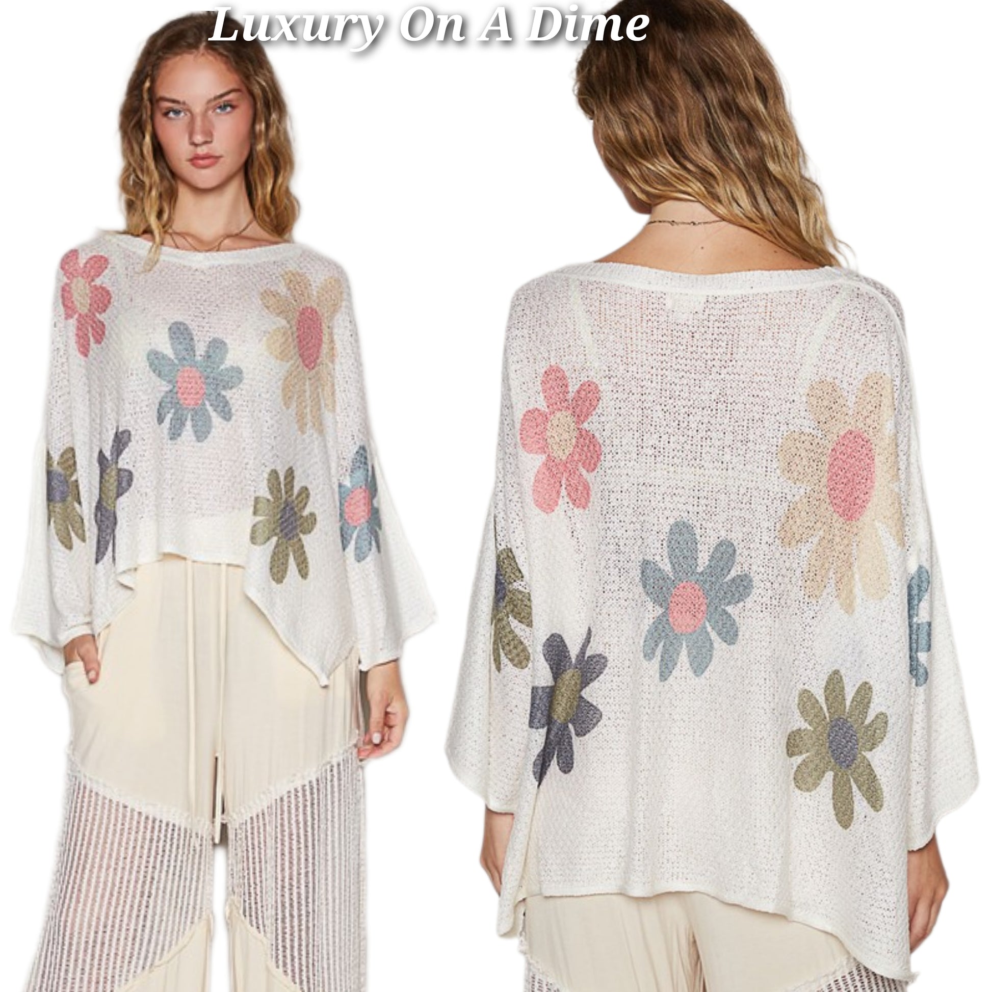 POL Daisy Colorful Retro Contrast Flower Top Oversized Shirt Pullover Knit Sweater