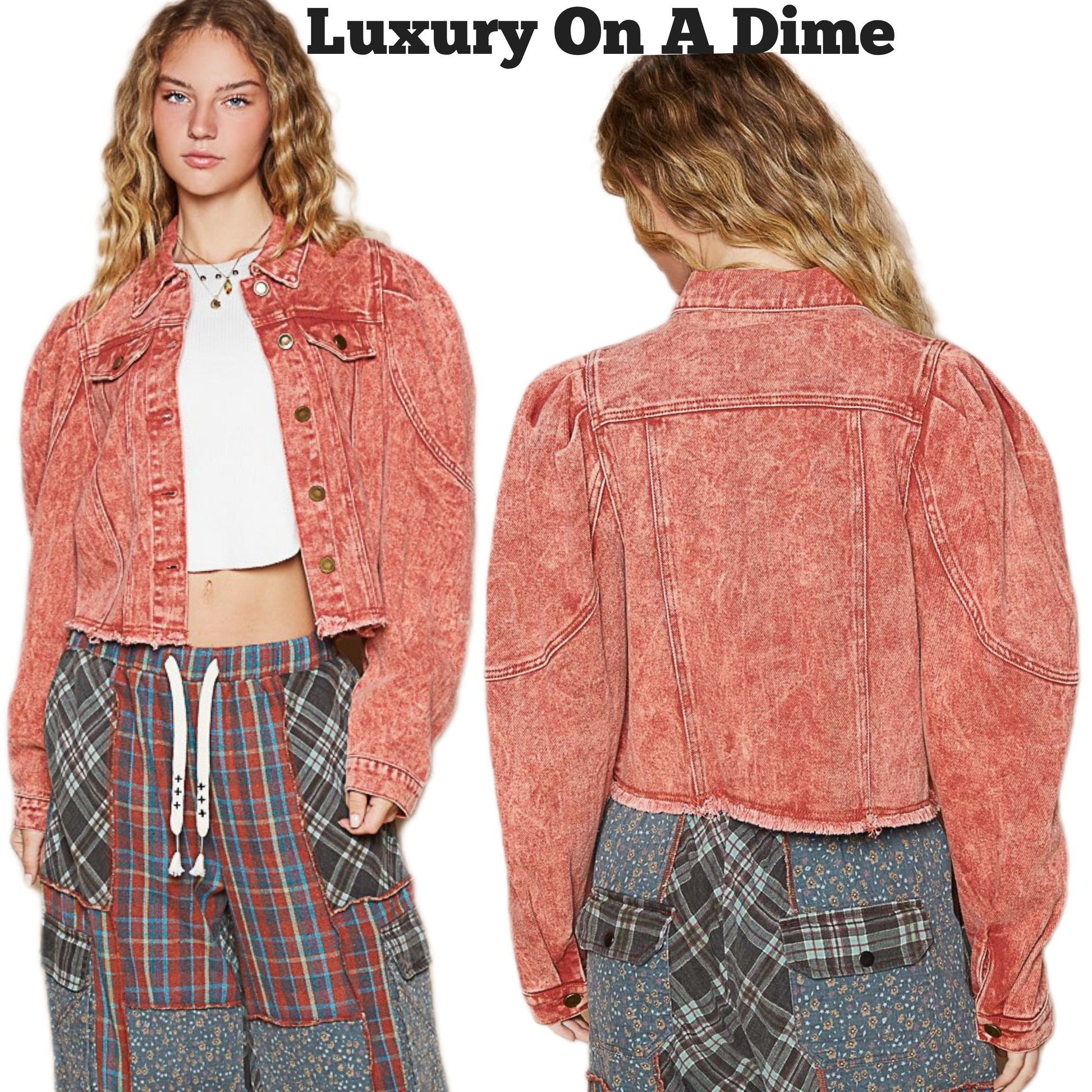 POL Acid Wash 90s Retro Cropped Denim Collar Button-Up Pocket Bleached Jean Jacket