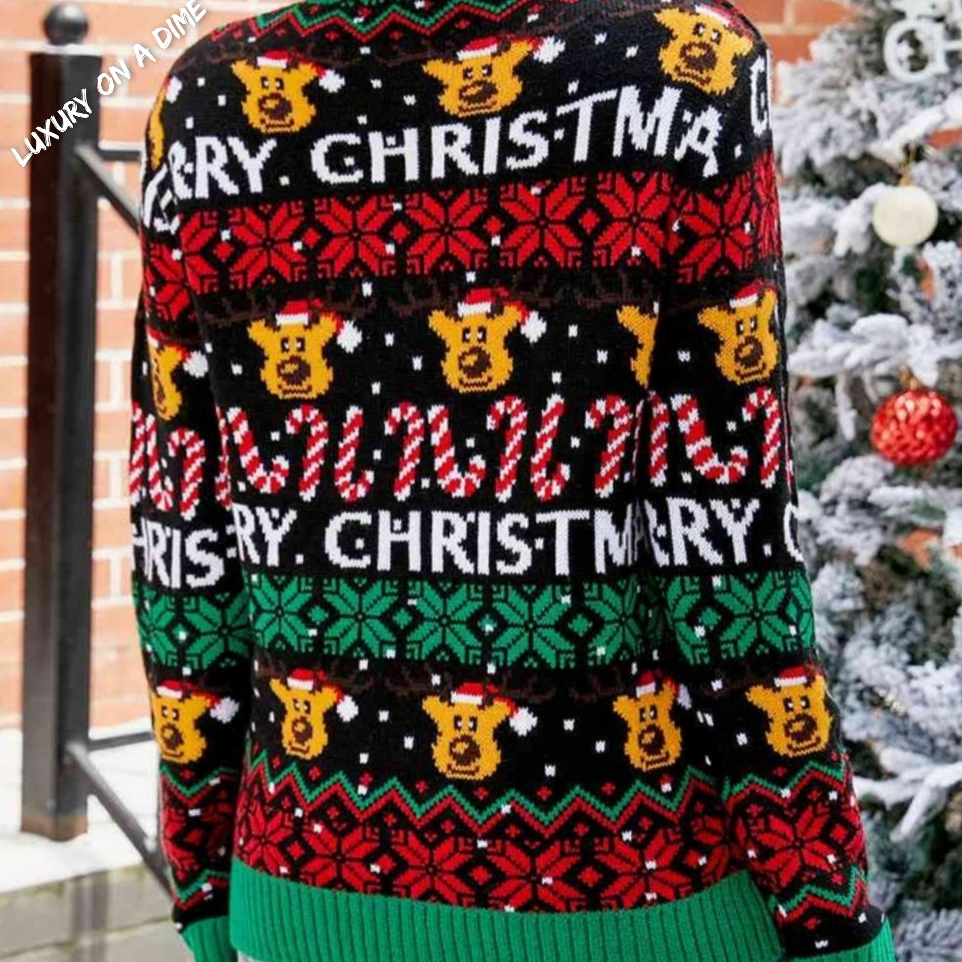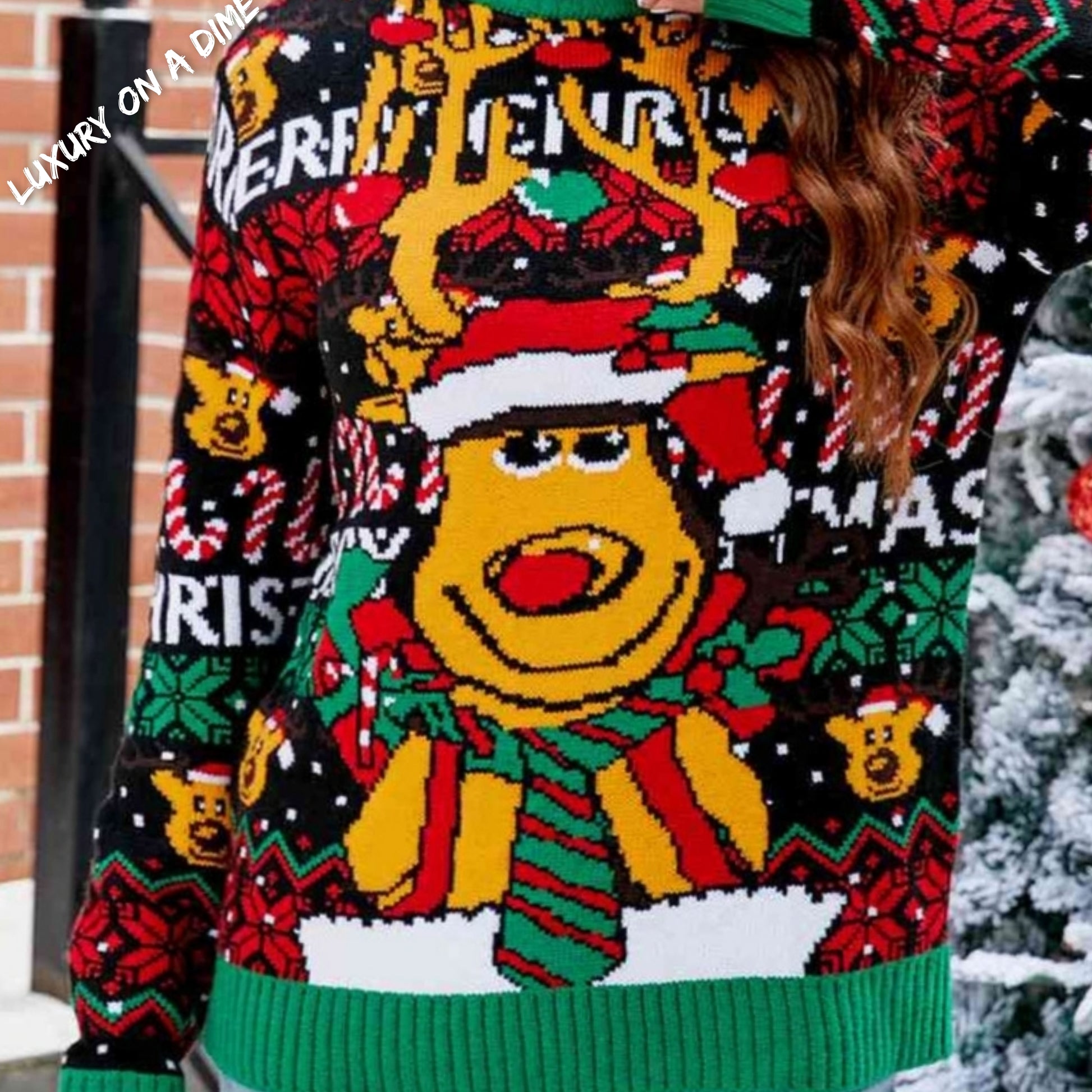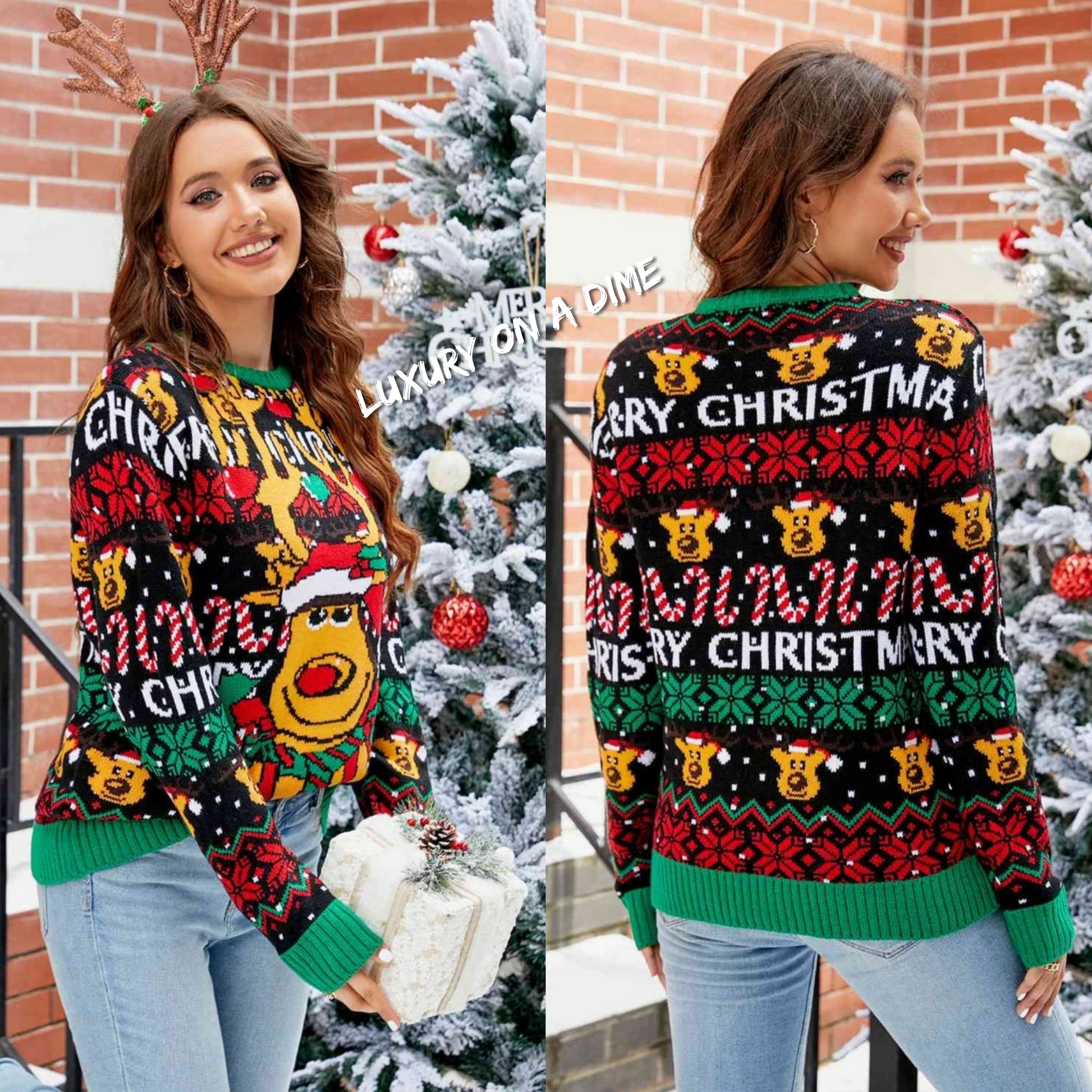 Merry Christmas Rudolph Reindeer Holiday Classic Long Sleeve Knit Sweater