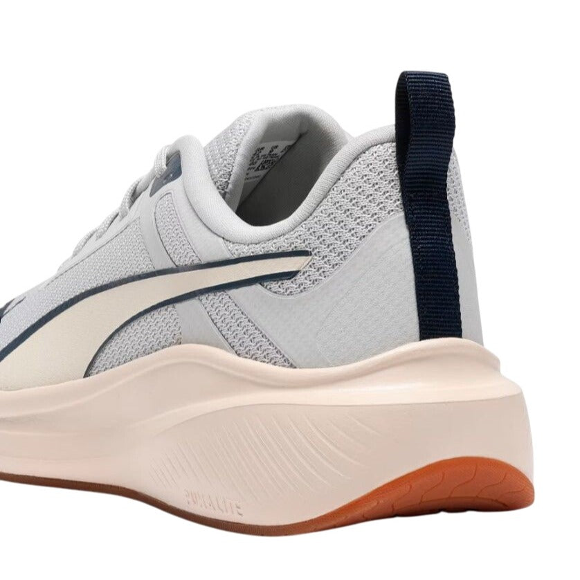 For the guy who wants to move with speed and purpose, these running shoes are built to perform. The sculpted silhouette is packed with performance tech like PUMALite foam, keeping every stride lightweight and responsive. A SoftFoam+ sockliner adds plush comfort underfoot, while the PROTREAD rubber outsole grips across gym floors, sidewalks, and city pavement. The engineered flex grooves flow with your foot, offering ergonomic ease through every motion. Designed with minimalist energy and a hint of techwear flair, these are go-to sneakers for cardio, commute, or weekend reset. Pairs well with sportcore, normcore, or performance-driven fits.