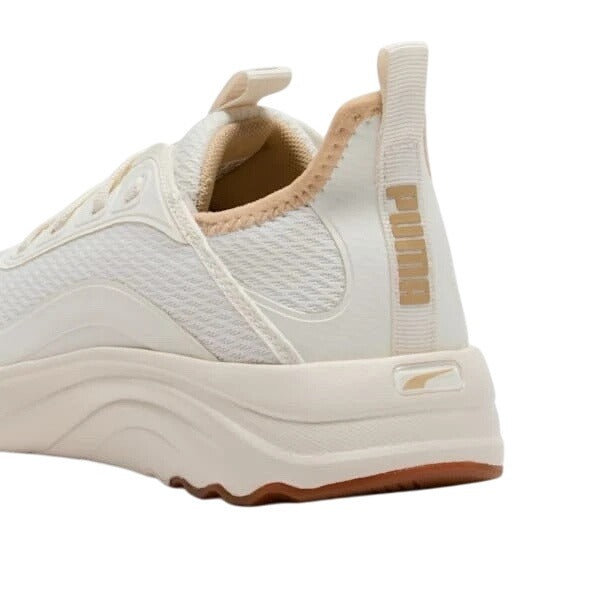 Soft curves, airy texture, and an easy-on silhouette make this pair a perfect balance of comfort and quiet confidence. Designed for effortless wear, the mesh upper feels featherlight while synthetic overlays give gentle structure. Inside, SOFTRIDE cushioning and a SoftFoam+ sockliner create a plush step that supports you from errands to walks, workouts to wind-downs. A sporty padded collar and tongue add a cozy touch. Muted cream and gold tones channel softcore and clean-girl energy, ideal for off-duty athleisure or minimal girl-next-door Y2K nods. Style them with tonal sweats, a midi skirt, or tech leggings for a fresh, wearable look.